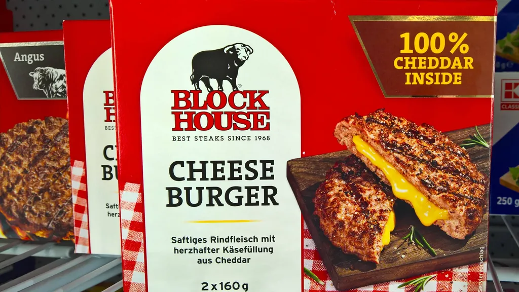 BlockHouse bzw Block House - Cheesburger. BlockHouse American Burger im Kühlregal. Block House ist eine 1968 gegründete Restaurantkette mit Sitz in Hamburg, die auf Steak bzw Steaks spezialisiert i...