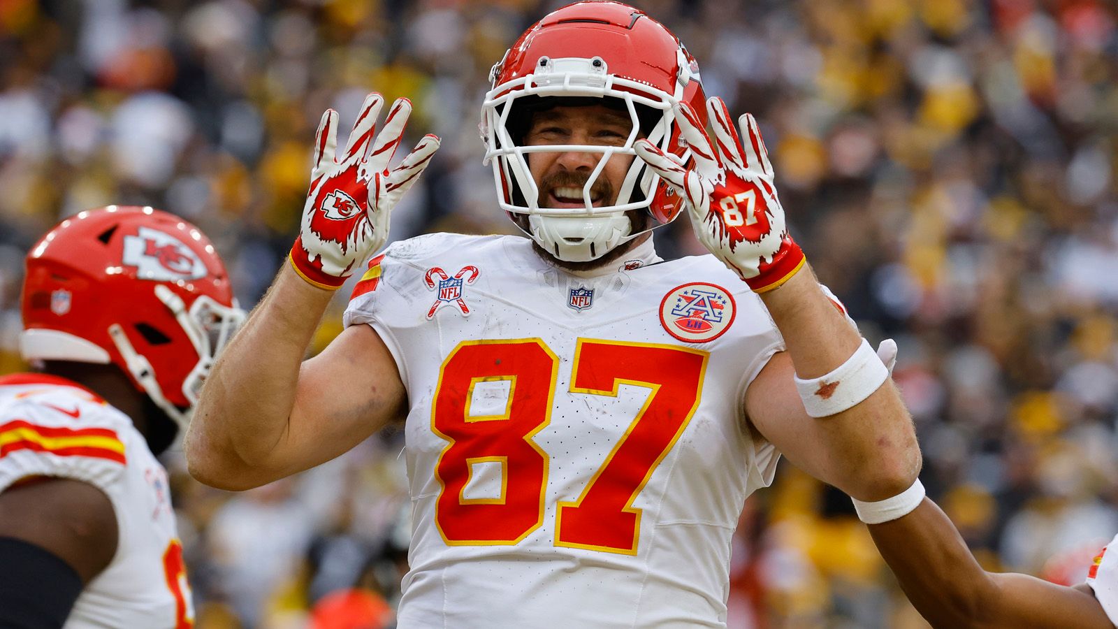 Tight End Kelce stieg durch seinen 77. gefangenen Touchdown-Pass im Schlussviertel gegen die Steelers zum alleinigen Rekordhalter der Franchise auf. Kelce überflügelte Tony Gonzalez, der von 1997 bis 2008 für die Chiefs gespielt hatte. "Tony ist ein Mentor für mich. Es ist eine Ehre, mit ihm in einem Satz genannt zu werden", sagte Kelce bei "Netflix".Icon Sportswire