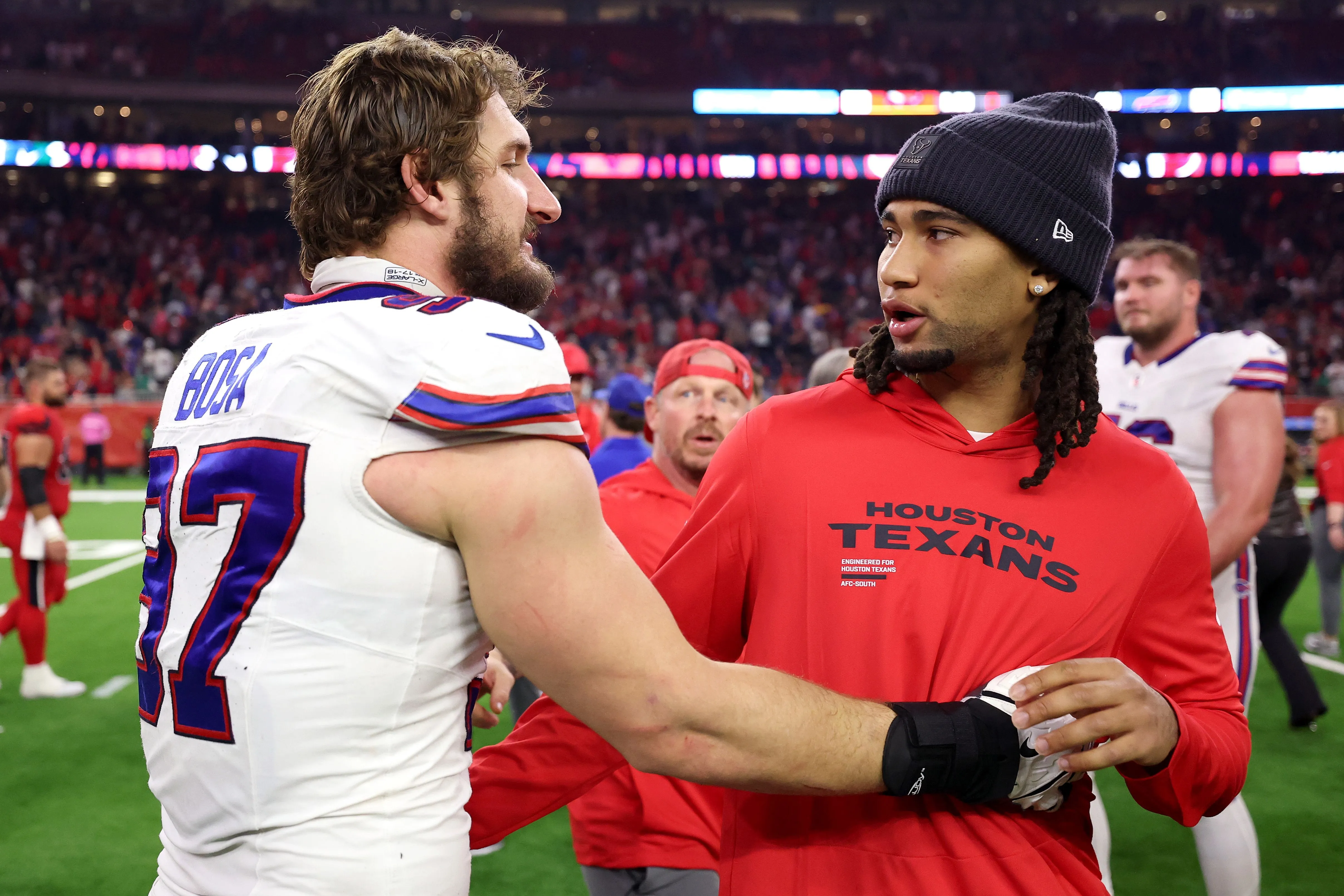 Vor allem dank der Defense gewannen die Texans, die nicht nur zwei Picks und einen Fumble holte, sie brachte Allen auch acht Mal mit einem Sack zu Boden. Alleine Will Anderson hatte 2,5 Sacks.