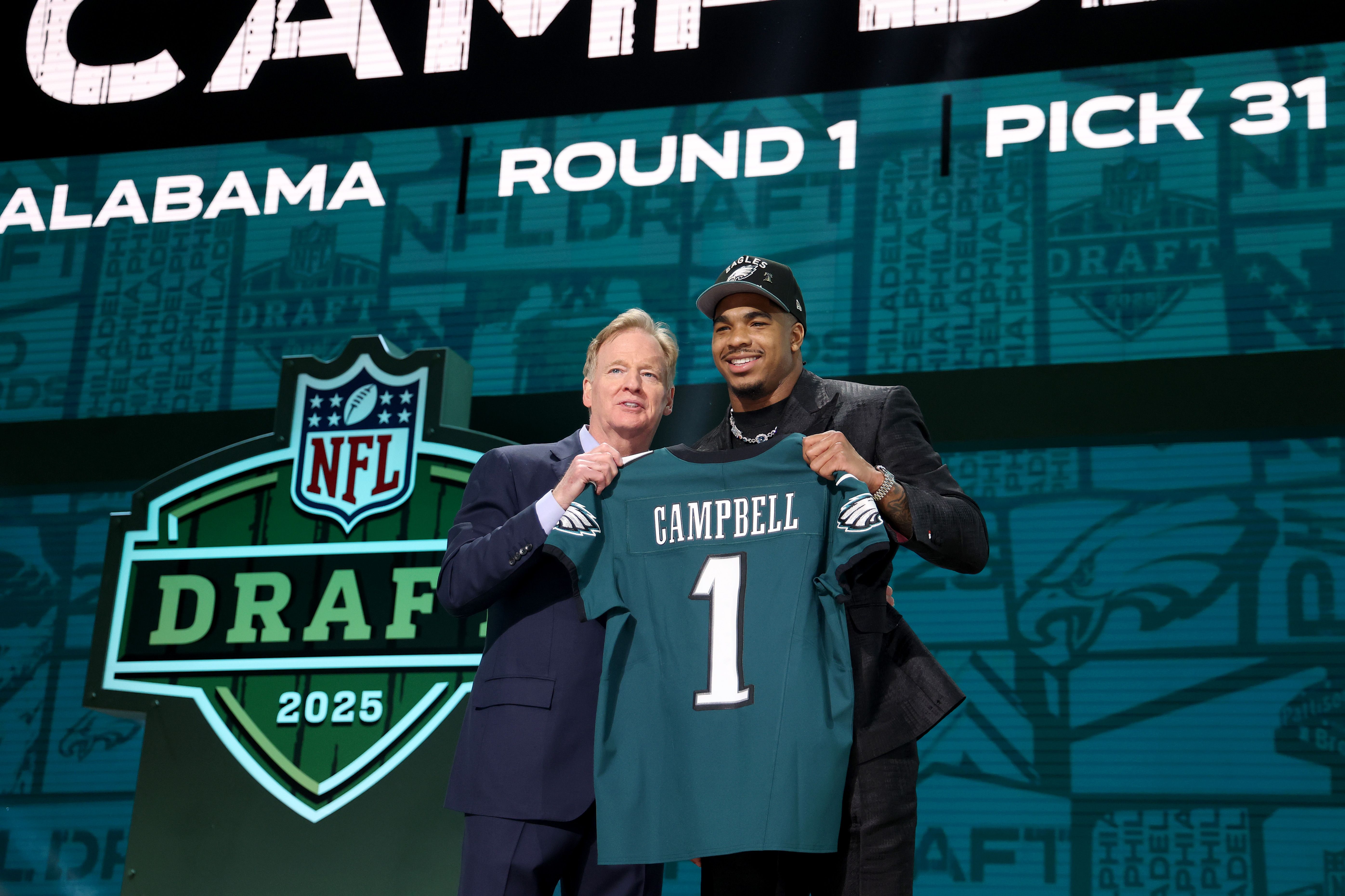 Eagles-GM Howie Roseman ist so lange über jeden Zweifel erhaben, bis ein Draft von ihm wirklich einmal zu einem Desaster wird. Der 2025er-Draft dürfte das nicht werden. Jihaad Campbell ist ein Steal Ende der ersten Runde, die ersten fünf Picks gingen alle in die Defense, die weiter das Prunkstück des Teams sein soll. Beim amtierenden Super-Bowl-Sieger gibt es traditionell kaum Schwachstellen, die sofort besetzt werden müssten. Doch die Klasse der Eagles kann auf Sicht sehr stark werden.2025 Getty Images