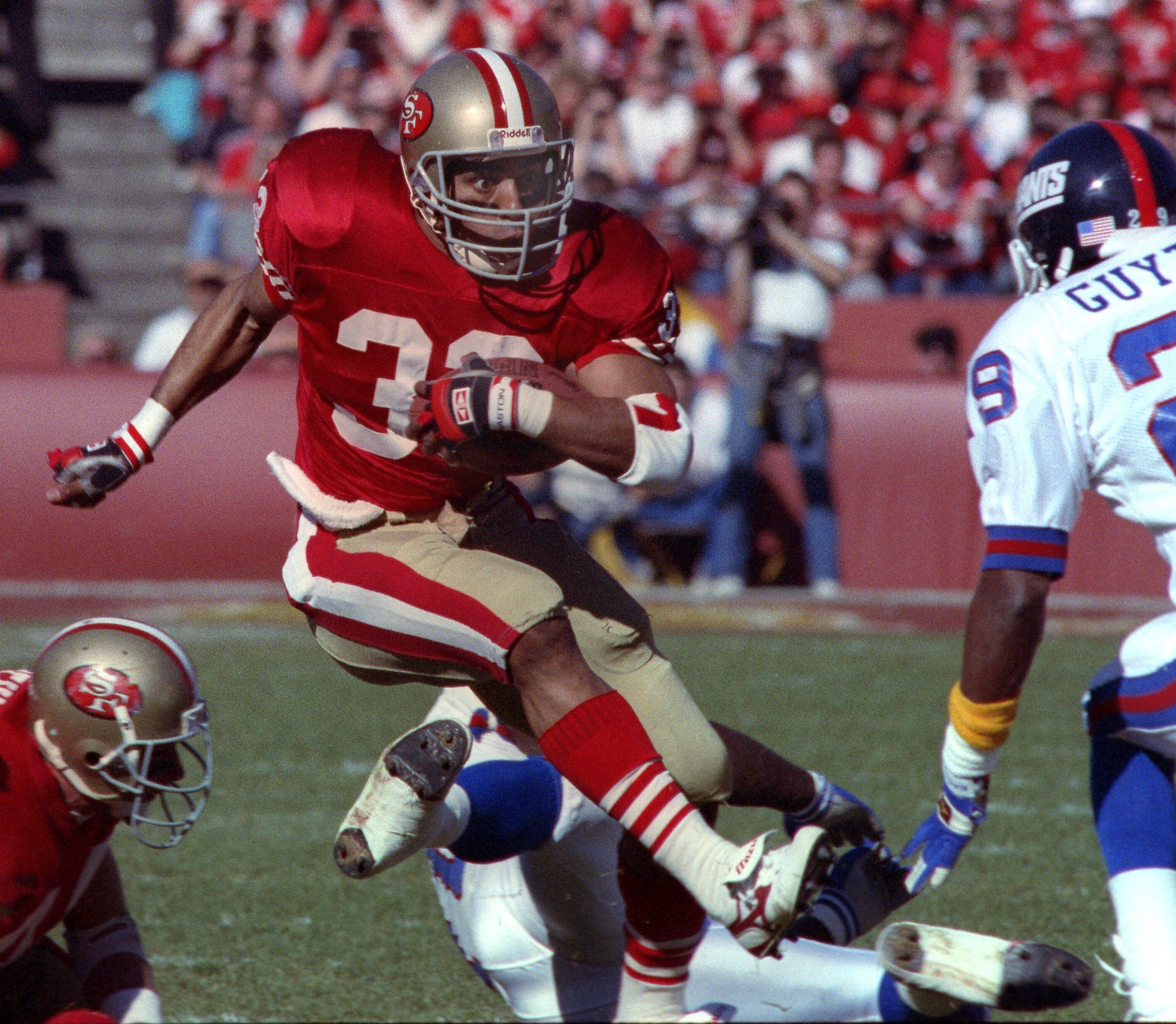 January 20, 1991 - San Francisco, California, U.S - San Francisco 49ers vs New York Giants at Candlestick Park Saturday, January 20, 1991. Giants beat 49ers 15-13. 49er running back Roger Craig Cop...
