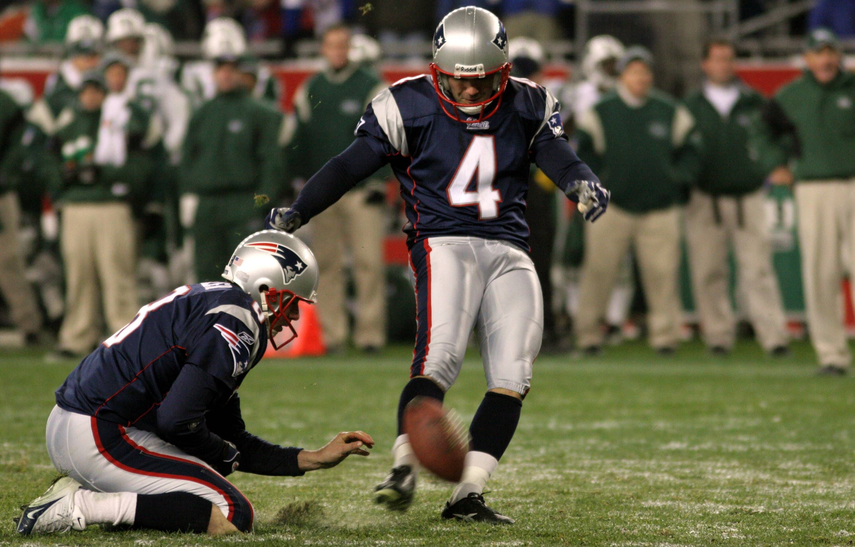 Adam Vinatieri (New England Patriots, re.) - Fieldgoalversuch - PUBLICATIONxNOTxINxUSA (BOS2005120423) American Football Herren NFL 2005 2006 Gruppe Foxboro Dynamik, American Football Herren NFL 20...