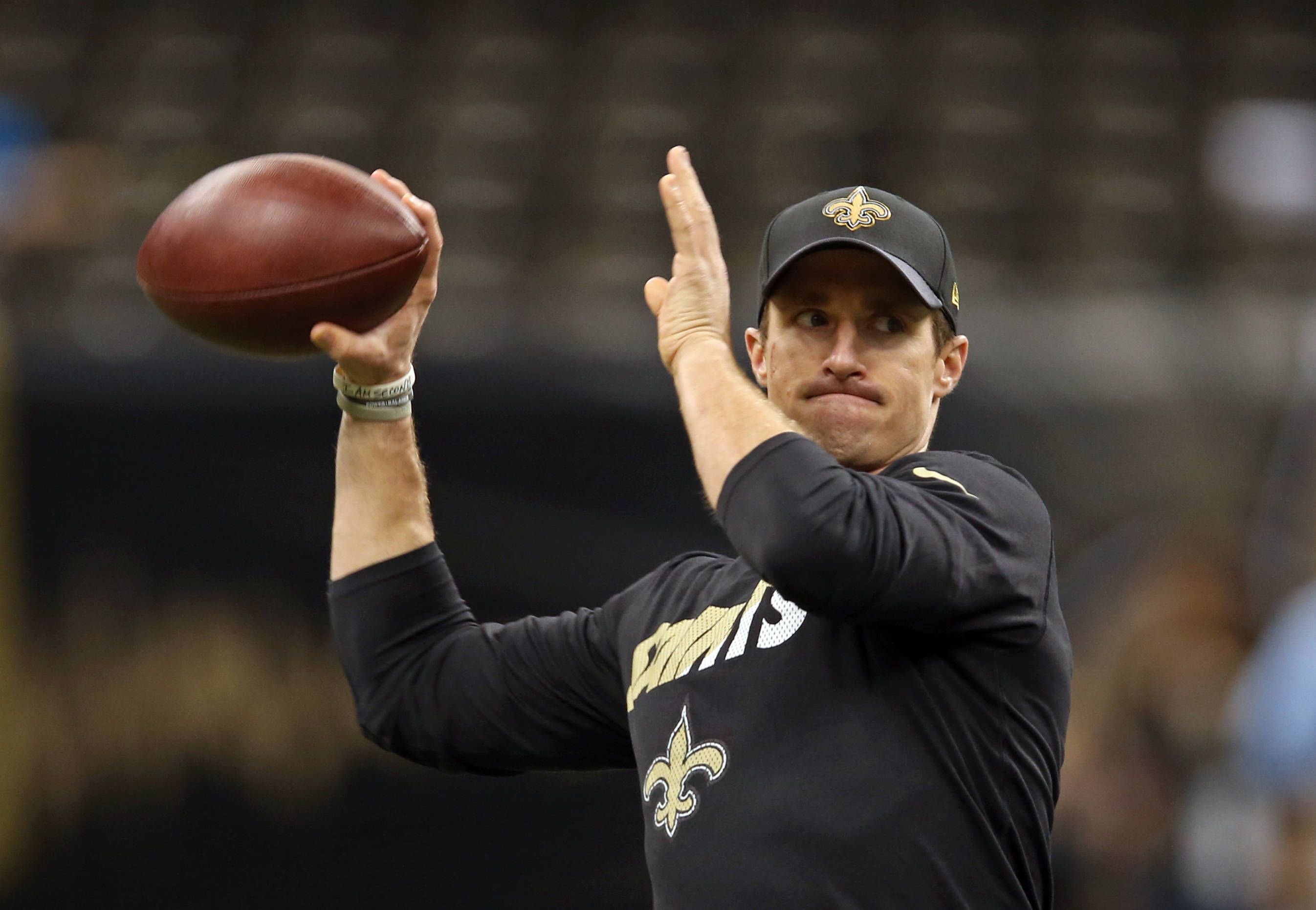 NFL, American Football Herren, USA Jacksonville Jaguars at New Orleans Saints Dec 27, 2015; New Orleans, LA, USA; New Orleans Saints quarterback Drew Brees (9) throws before their game against the ...