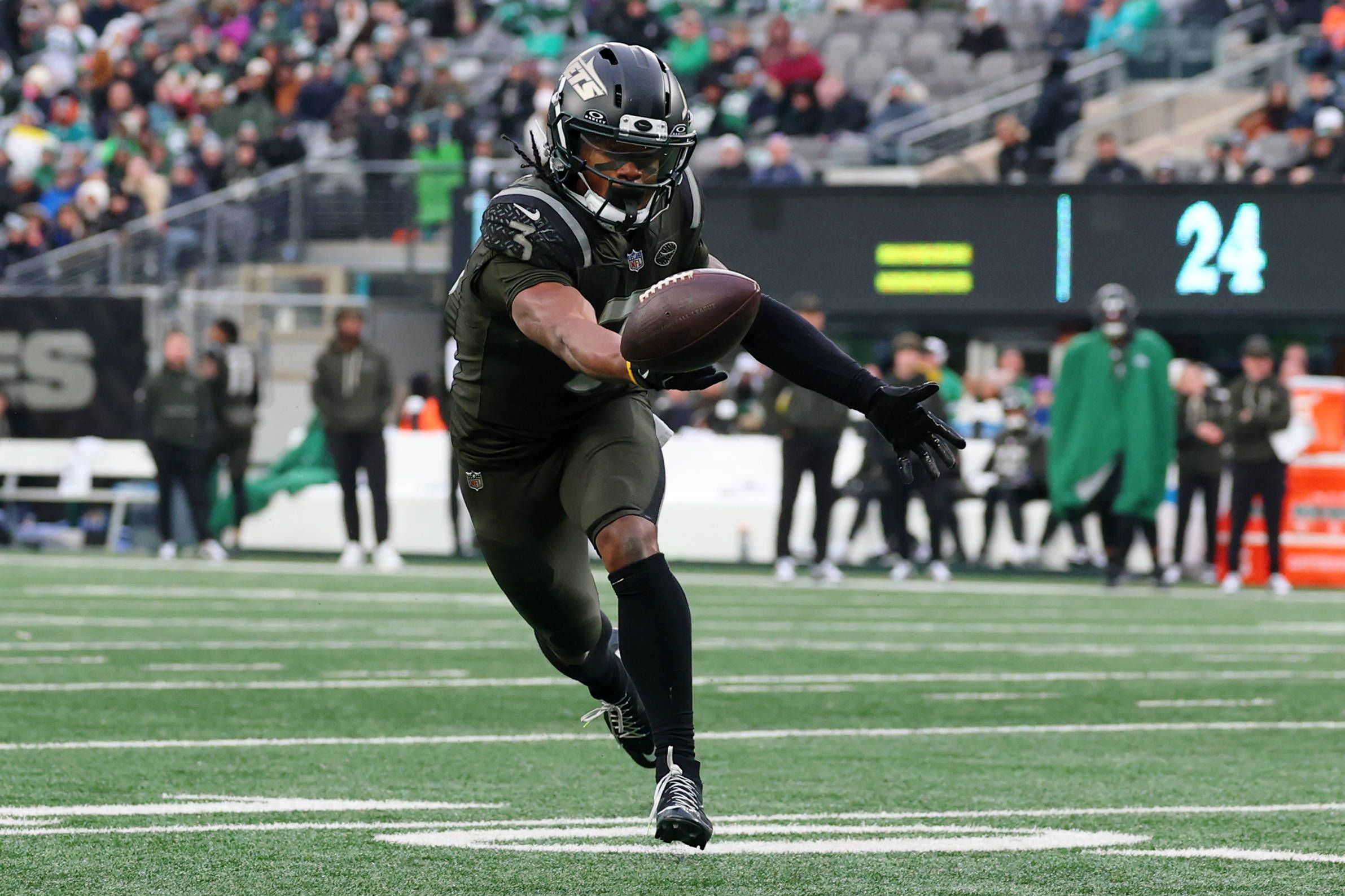 Eine weitere Saison zum Vergessen für die New York Jets. Nach der deutlichen 10:34-Niederlage in Week 14 gegen den Division-Konkurrenten aus Miami, der seine Saison tatsächlich noch herumgerissen hat, bestand für kein Team aus New York mehr eine Chance auf die Playoffs.IMAGO/Imagn Images