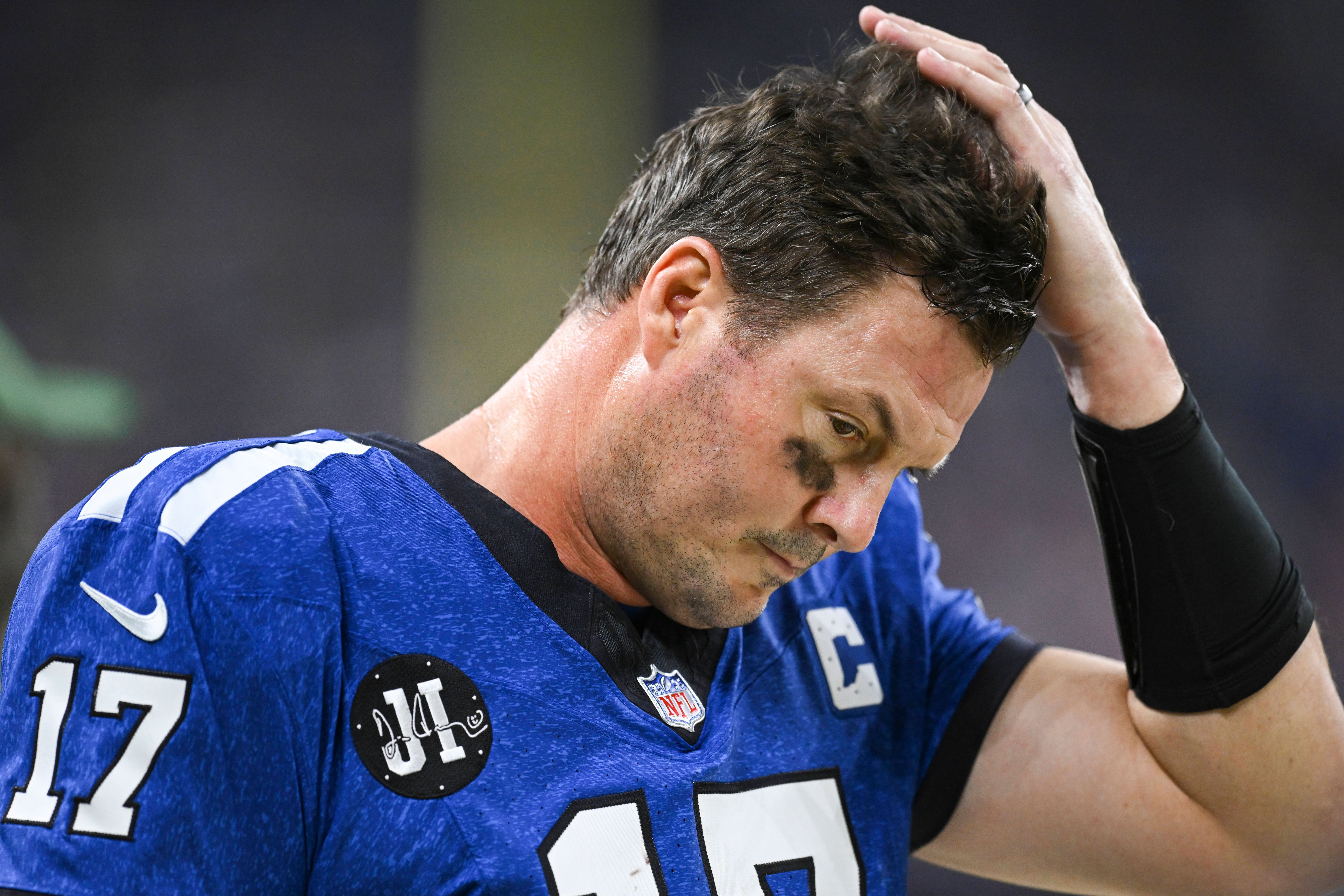 INDIANAPOLIS, IN - DECEMBER 22: Indianapolis Colts Quarterback Philip Rivers (17) reacts during the NFL, American Football Herren, USA game between the San Francisco 49ers and the Indianapolis Colt...