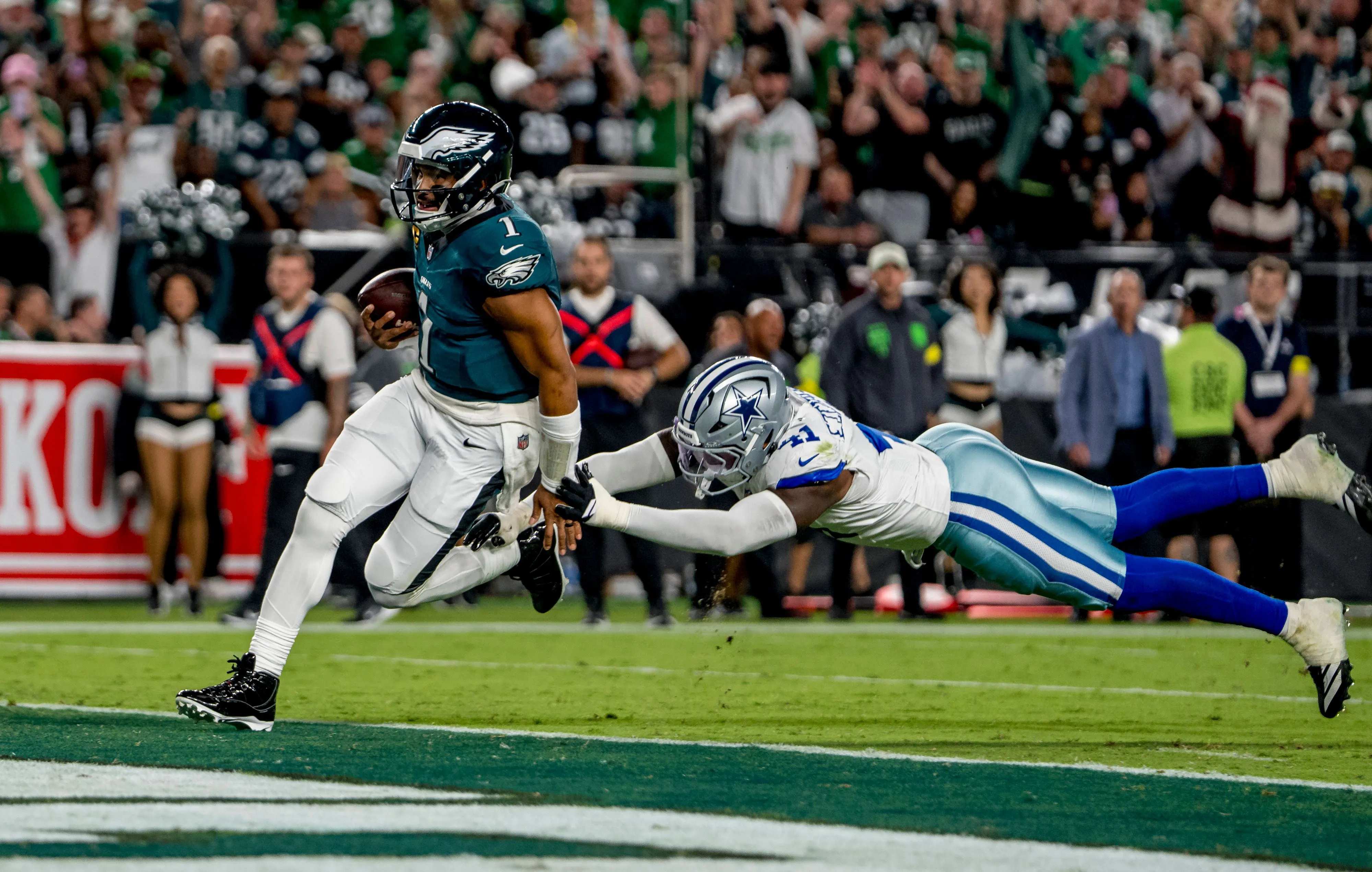 Mehr als das: Dallas ging zwei Mal mit 7:0 und 14:7 in Führung, am Ende setzte sich die höhere individuelle Klasse bei den Eagles durch. Jalen Hurts überzeugte vor allem auf dem Boden mit 65 Yards und zwei Rushing Touchdowns. Durch die Luft gelangen ihm 152 Yards, bei 23 Pässen aber nur vier Incompletions.