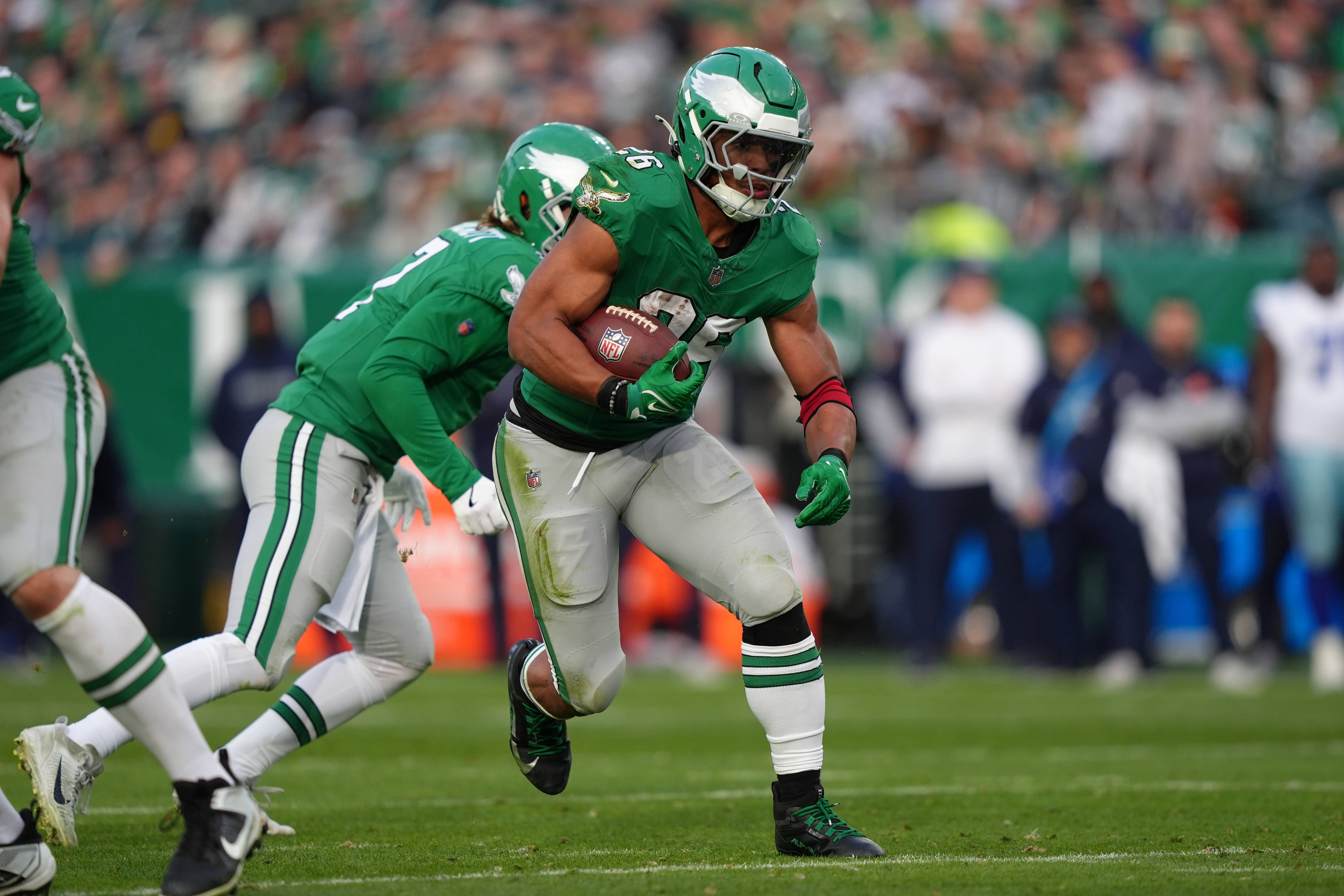 PHILADELPHIA, PA - DECEMBER 29: Philadelphia Eagles running back Saquon Barkley (26) carries the ball in the second half during the game between the Dallas Cowboys and Philadelphia Eagles on Decemb...