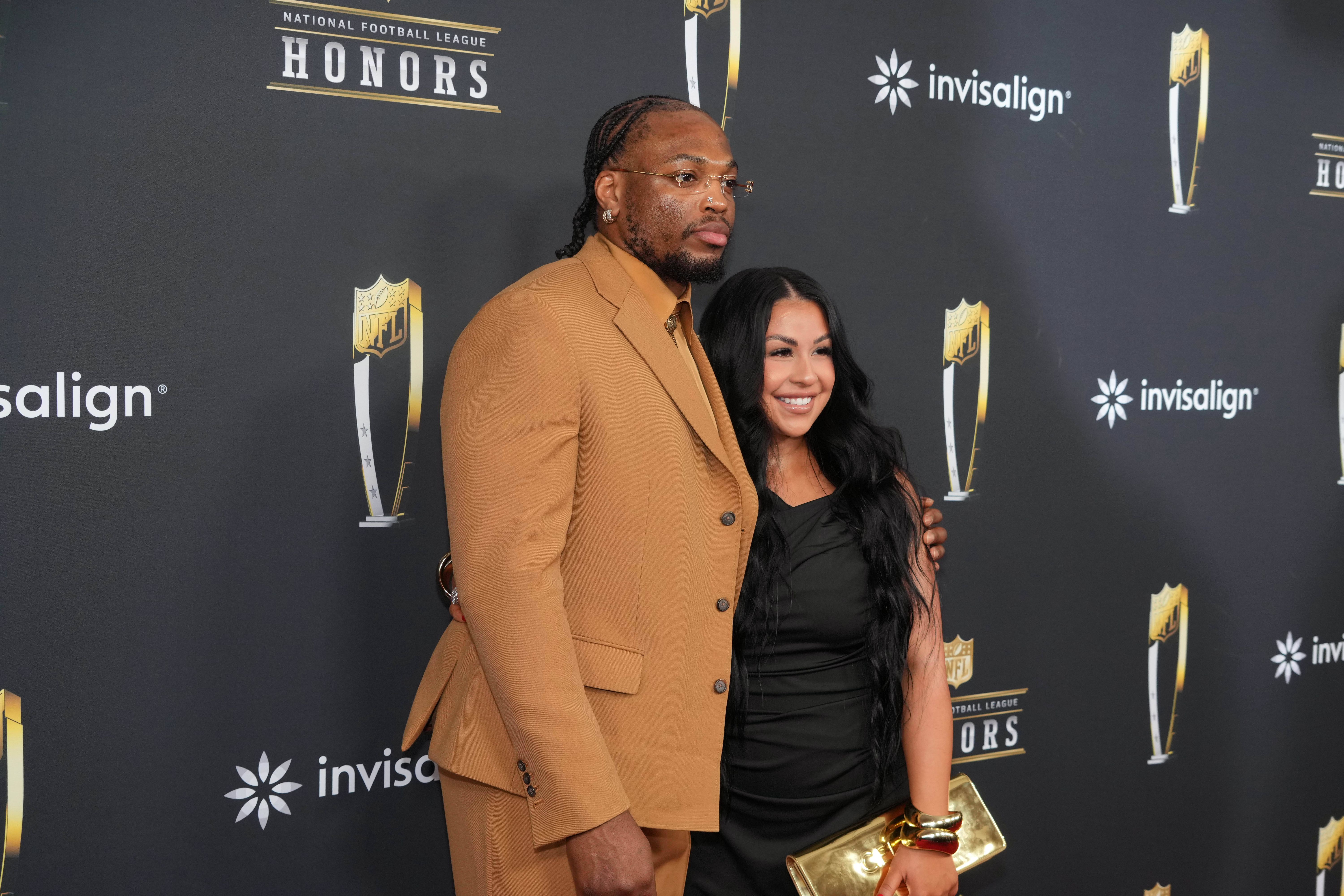 NFL, American Football Herren, USA Super Bowl LIX-NFL Honors Red Carpet Feb 6, 2025; New Orleans, LA, USA; Derrick Henry and Adrianna Rivas on the red carpet before Super Bowl LIX NFL Honors at Sae...