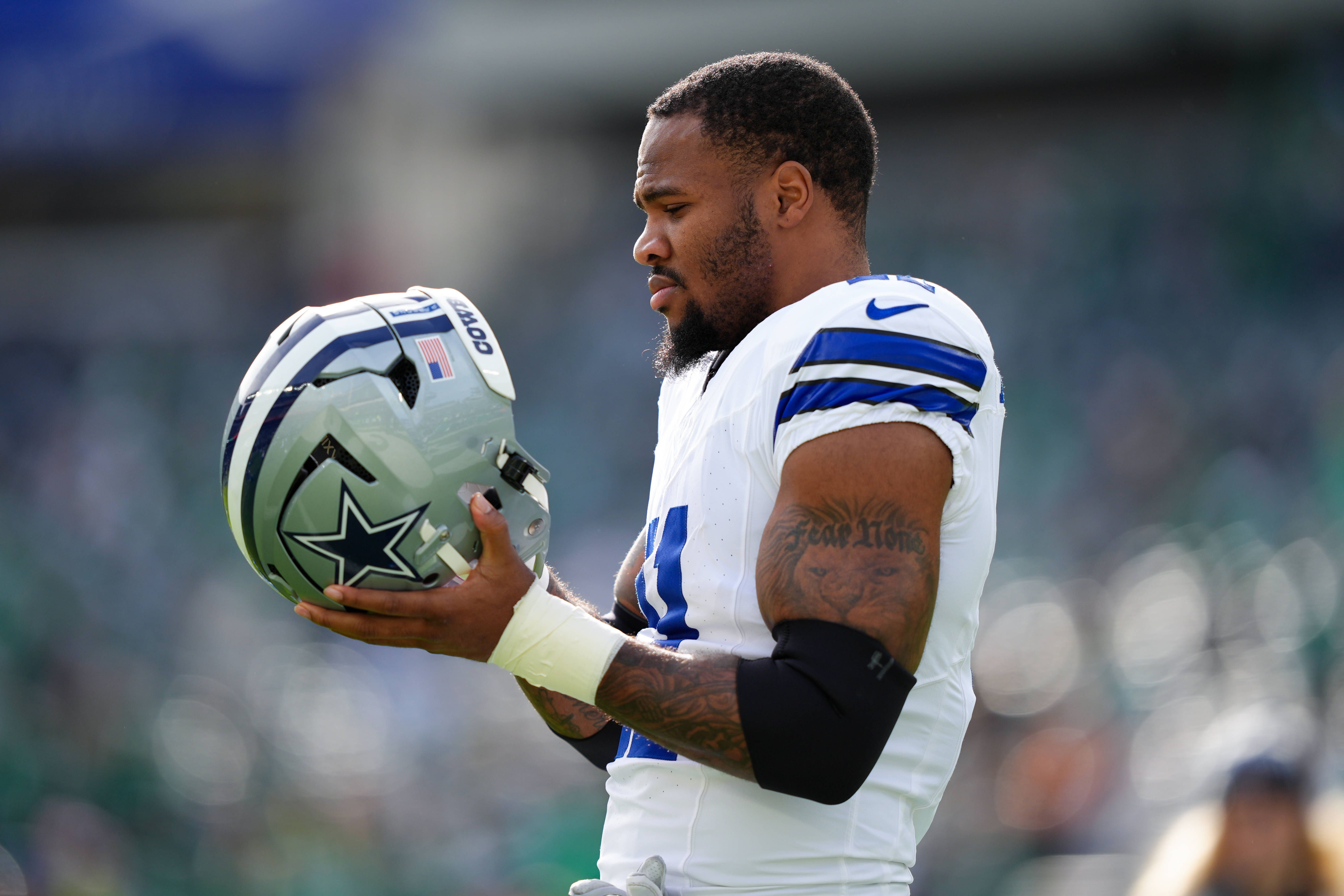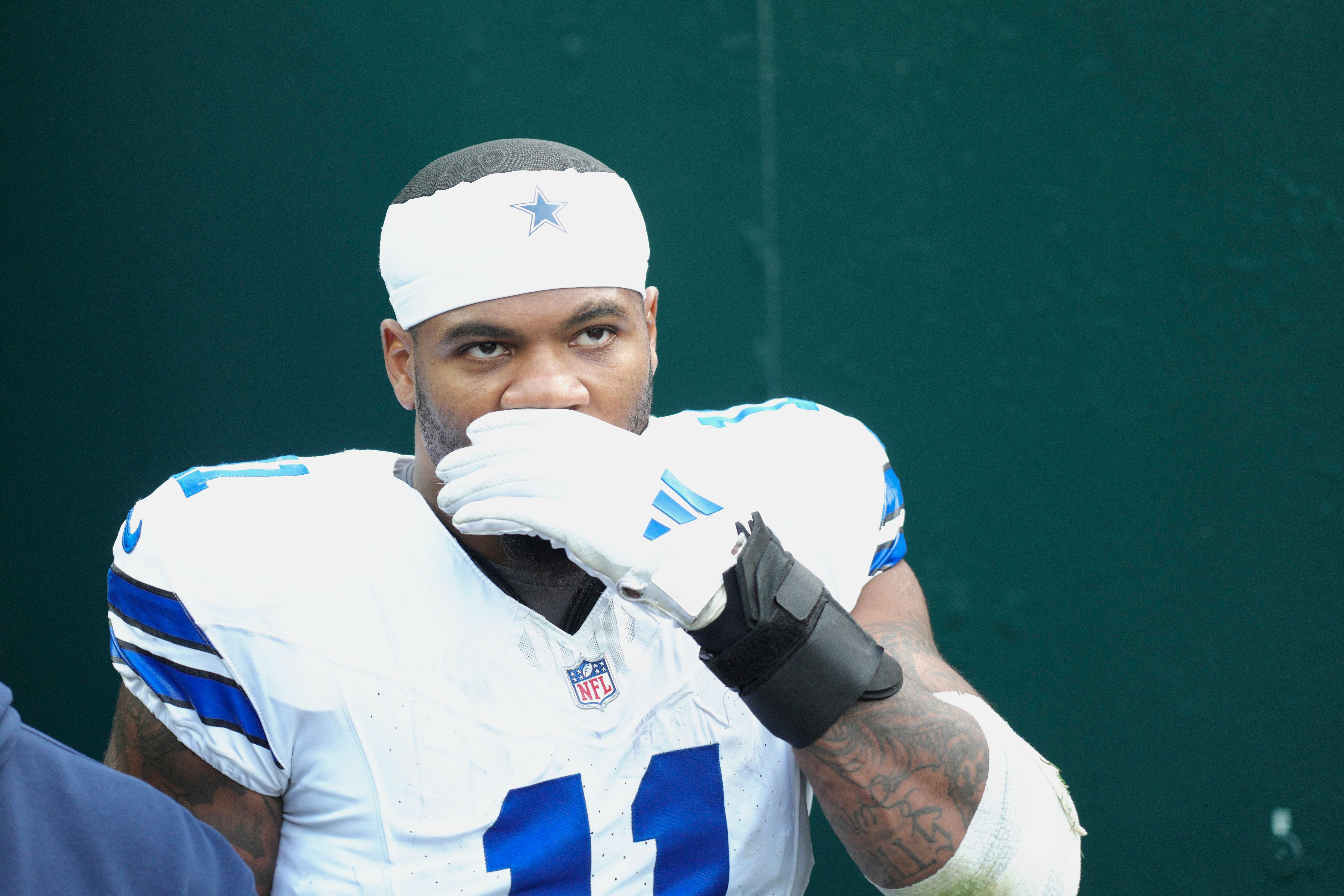 PHILADELPHIA, PA - DECEMBER 29: Dallas Cowboys defensive lineman Micah Parsons (11) looks on before the game between the Dallas Cowboys and Philadelphia Eagles on December 29, 2024 at Lincoln Finan...
