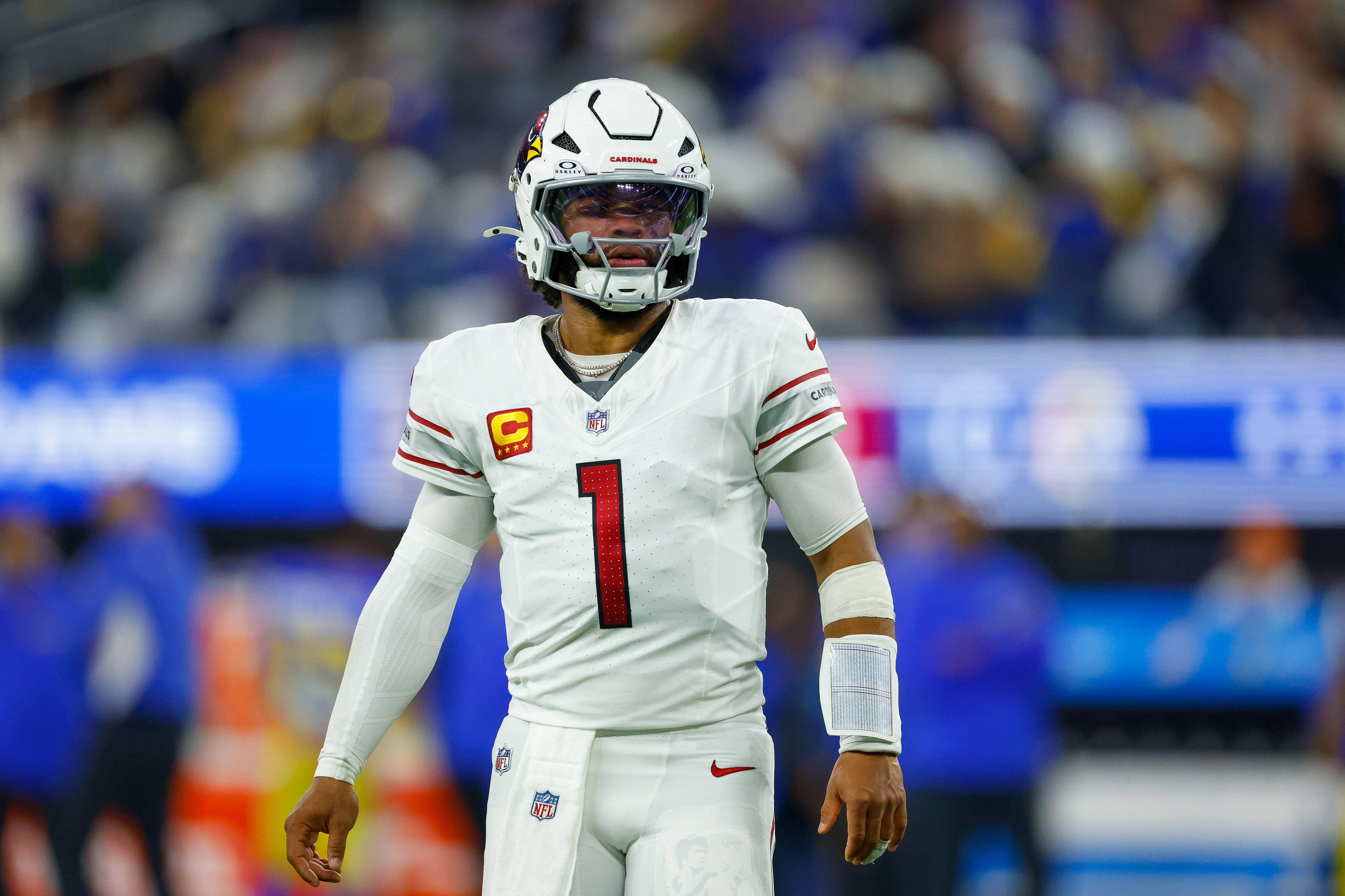 INGLEWOOD, CA - DECEMBER 28: Arizona Cardinals quarterback Kyler Murray (1) walks to the sideline during an NFL, American Football Herren, USA game between the Arizona Cardinals and Los Angeles Ram...