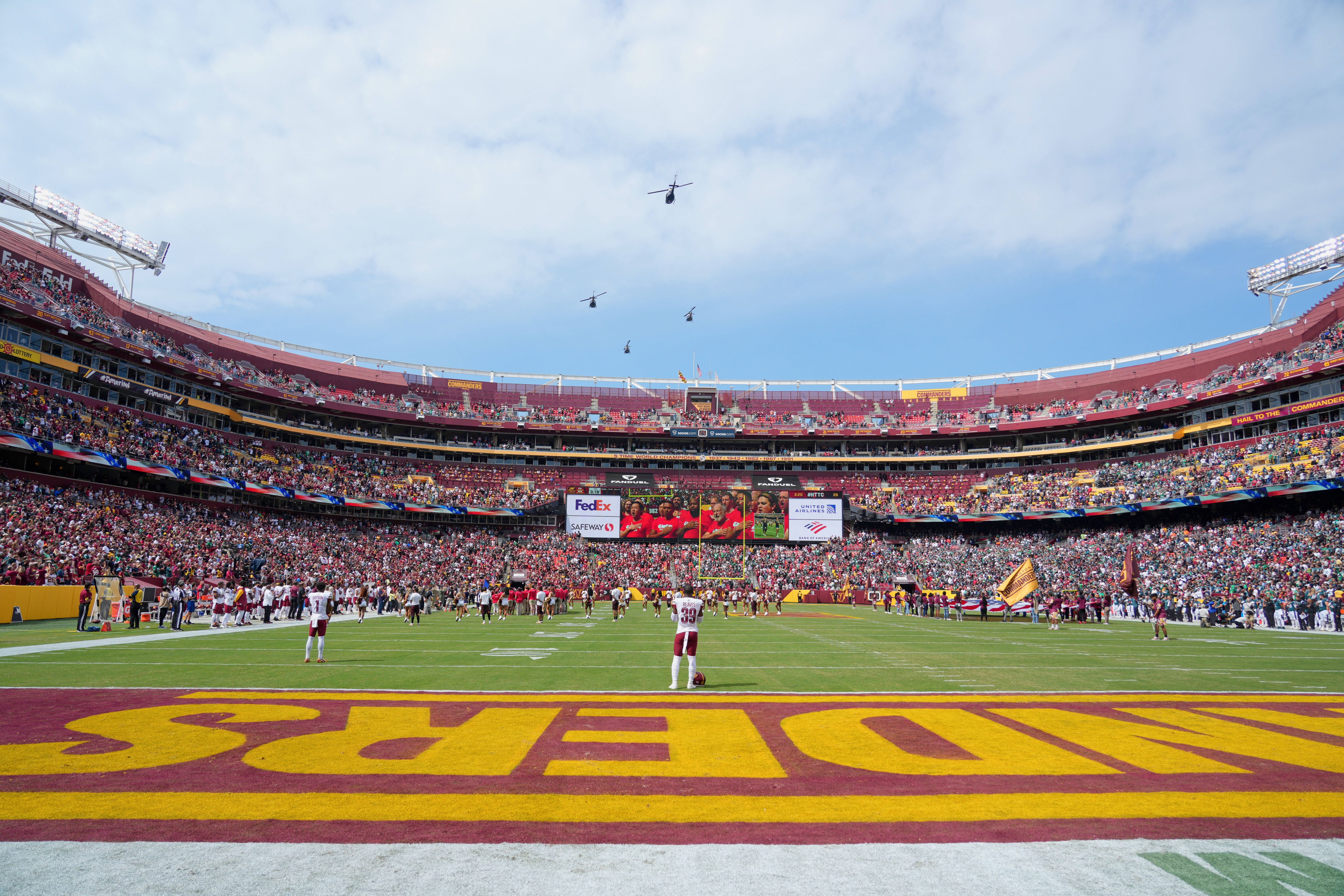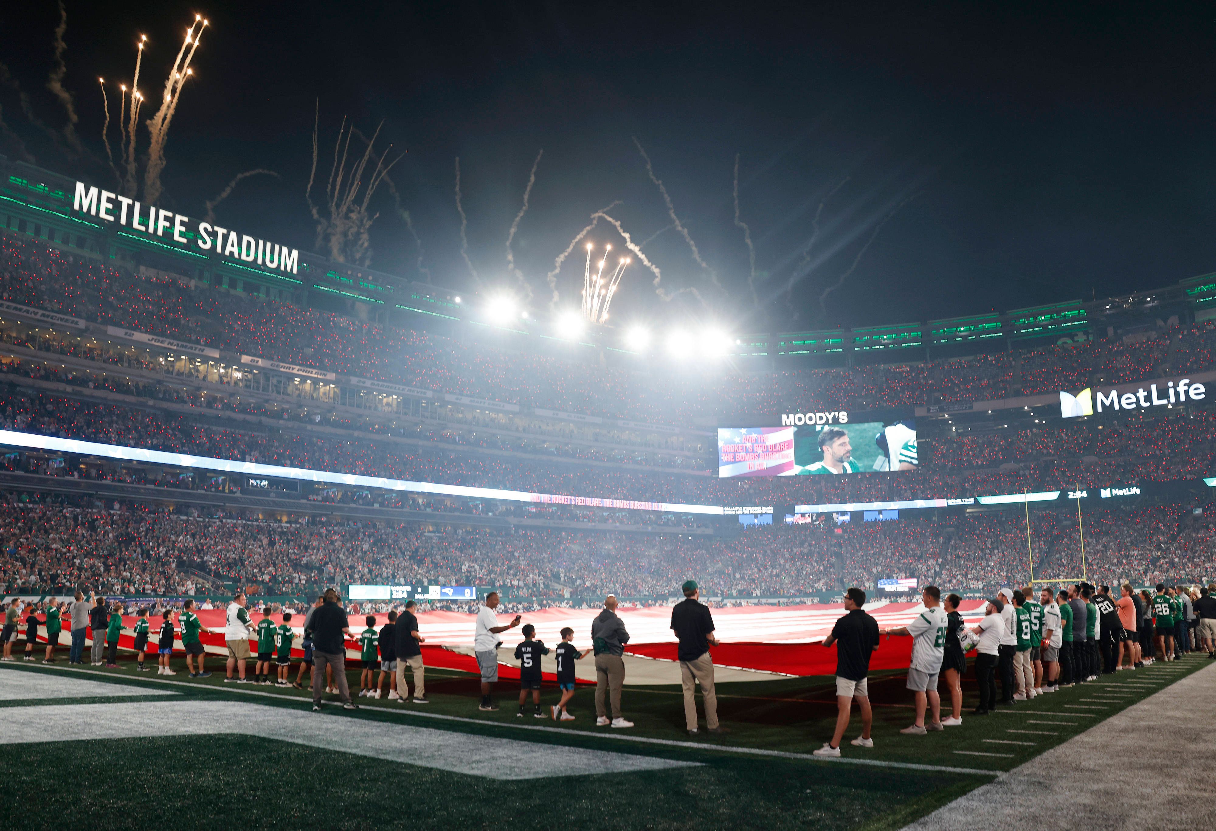 NFL, American Football Herren, USA New York Jets at Tennessee Titans Sep 15, 2024; Nashville, Tennessee, USA; A general view of a fly over prior to the start during the first half at Nissan Stadium...