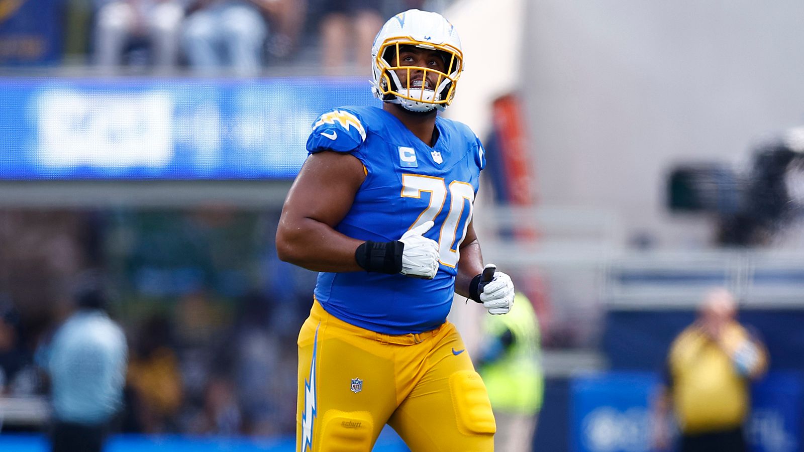 Wie die LA Chargers bekanntgaben, hat sich Offensive Tackle Rashawn Slater im Training die Patellasehne gerissen. Damit wird der 26-Jährige die gesamte NFL-Saison 2025 verpassen. Der Erstrunden-Pick von 2021 hat erst im Juli 2025 einen neuen Vertrag unterschrieb, der ihn zum bestbezahlten O-Liner der NFL-Geschichte macht. Für vier Jahre kassiert Slater laut "ESPN" 114 Million US-Dollar (92 Millionen US-Dollar garantiert).Getty Images