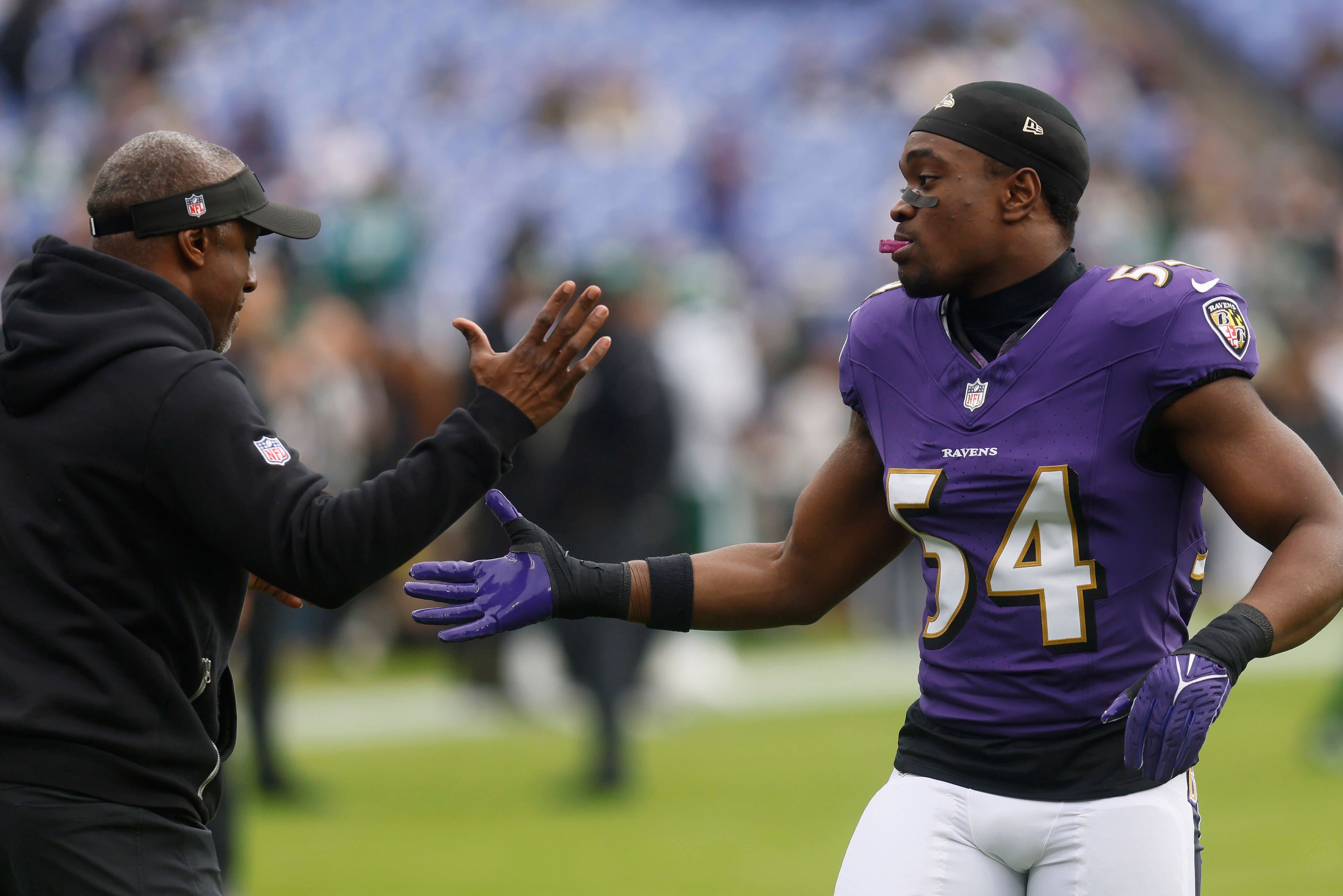 November 23, 2025: Baltimore Ravens linebacker Chandler Martin (54) before a game against the New York Jets at M&T Bank Stadium in Baltimore, MD. Photo Mike Buscher Cal Media. Baltimore USA - ZUMAc...