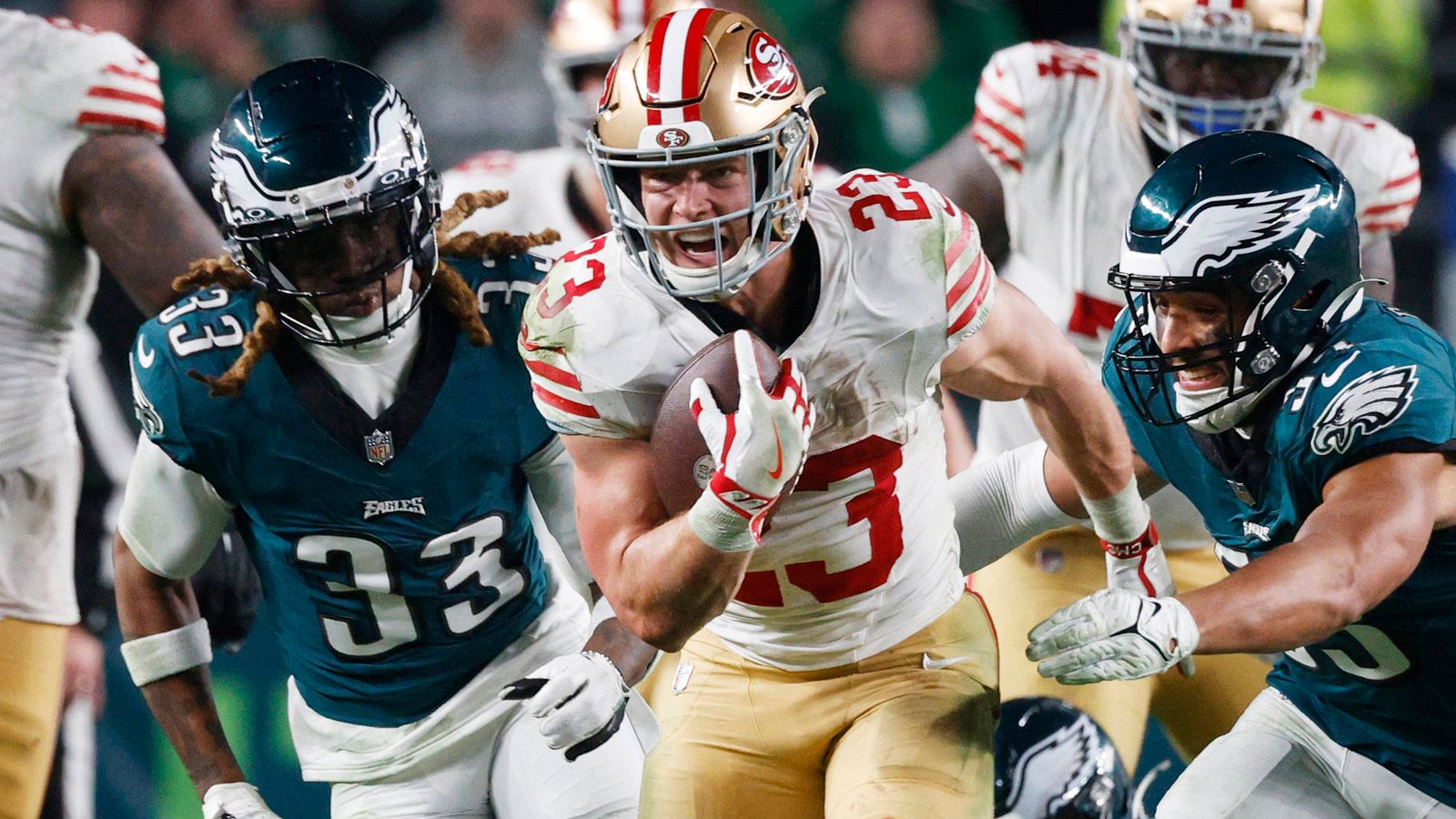 1. Platz: Christian McCaffrey (San Francisco 49ers), Dalton Kincaid (Buffalo Bills), Christian Kirk (Houston Texans), DJ Moore (Chicago Bears) – jeweils 2 Touchdowns