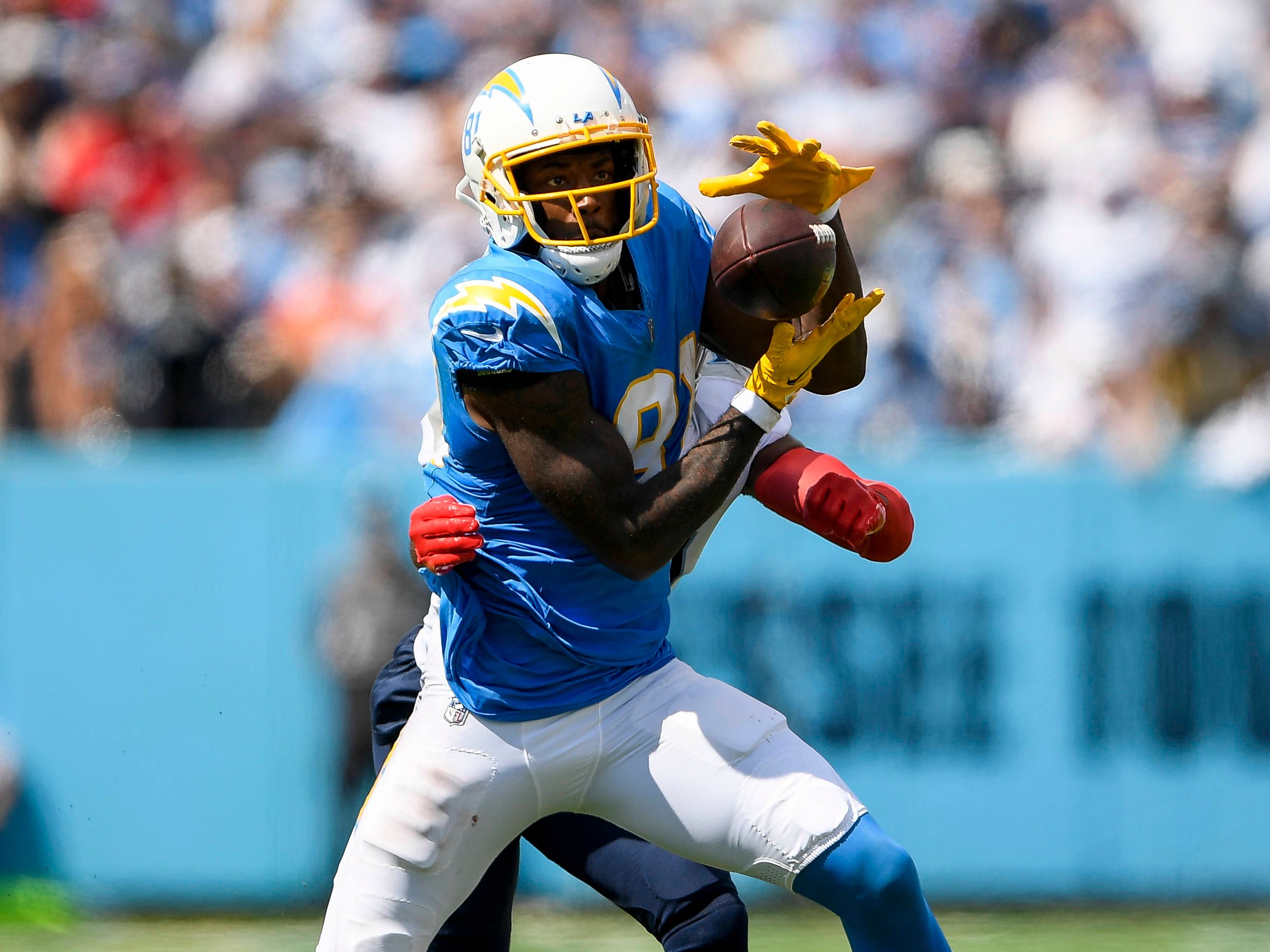 September 17, 2023: Los Angeles Chargers wide receiver Mike Williams (81) makes a catch against the Tennessee Titans during the second half of an NFL, American Football Herren, USA game between the...