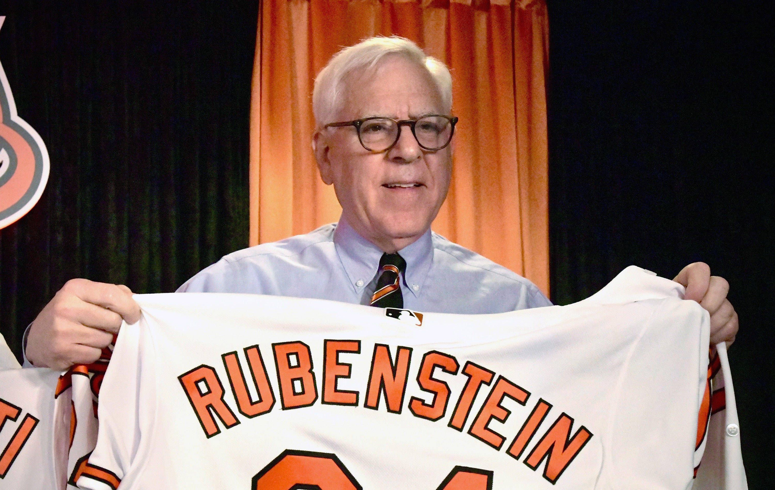 May 17, 2024: David Rubenstein, new owner of the Baltimore Orioles, shows off the Oriole jersey presented to him during a news conference on opening day, March 28, 2024. - ZUMAm67_ 20240517_zaf_m67...