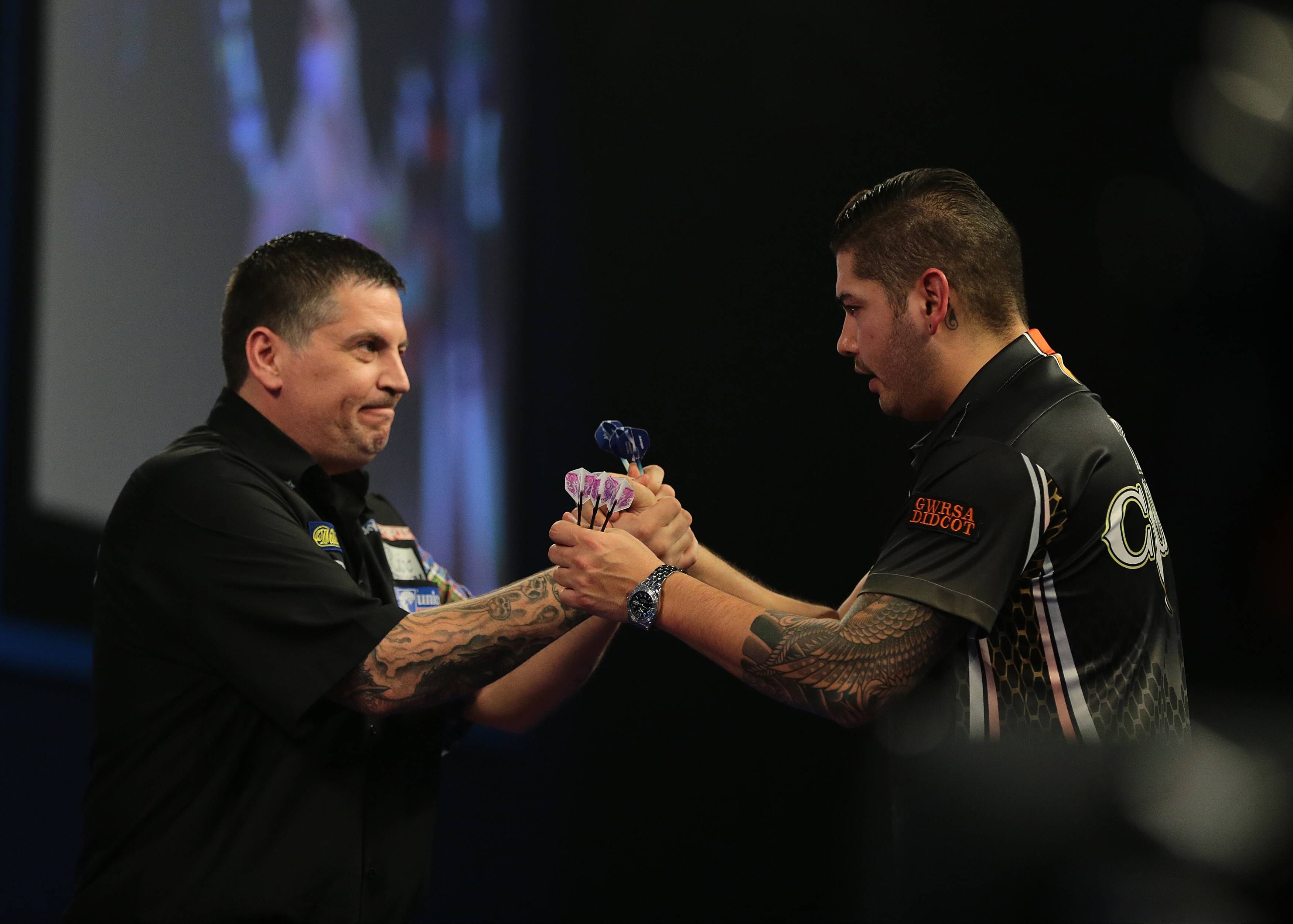RECORD DATE NOT STATED 21st December 2024, Alexandra Palace, London, England; 2024 25 PDC Paddy Power World Darts Championships Day 7; Connor Scutt congratulates Damon Heta on his win PUBLICATIONxN...