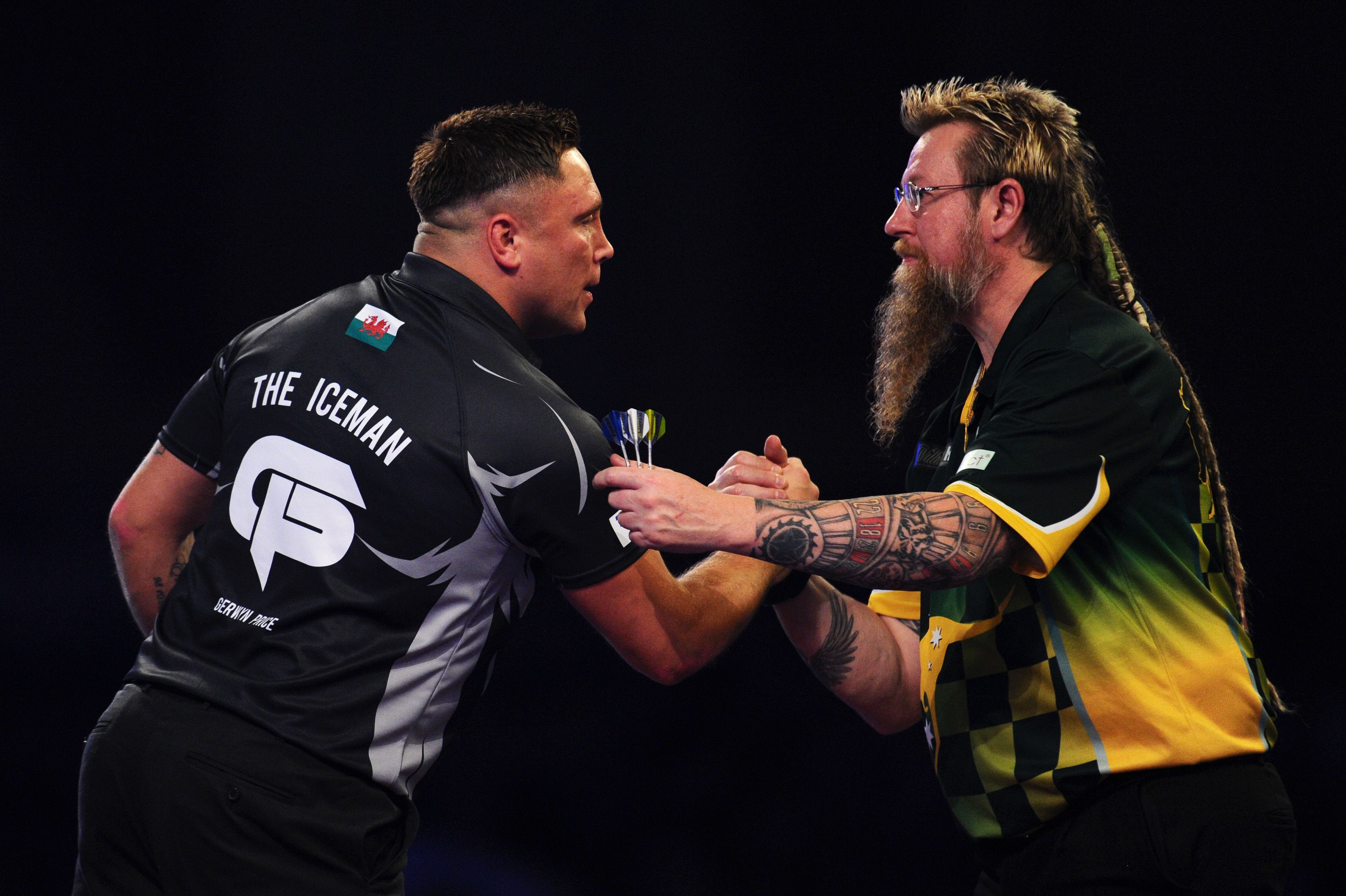Schon vor dem Halbfinale gab es Sticheleien. Nach dem Gewinn des ersten Satzes streckte Wright die Zunge raus, Price rempelte den Schotten nach dem 1:1-Ausgleich an. Nach der Partie verließ der "Iceman" flott die Bühne, einen Handshake gab es nicht. Später twitterte Price, dass er wegen Wrights Zungen-Aktion das Endspiel verpasst habe.2019 Getty Images