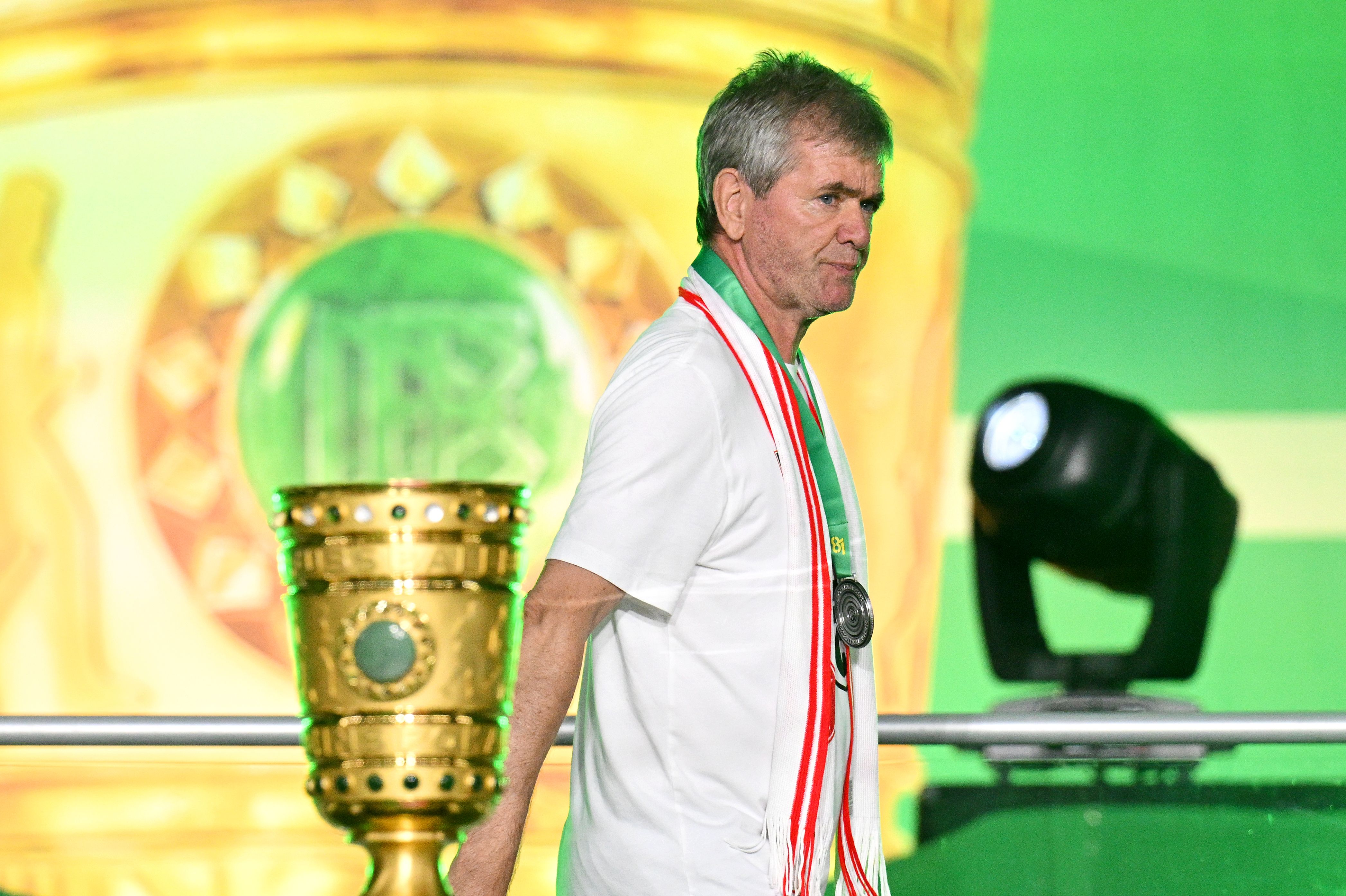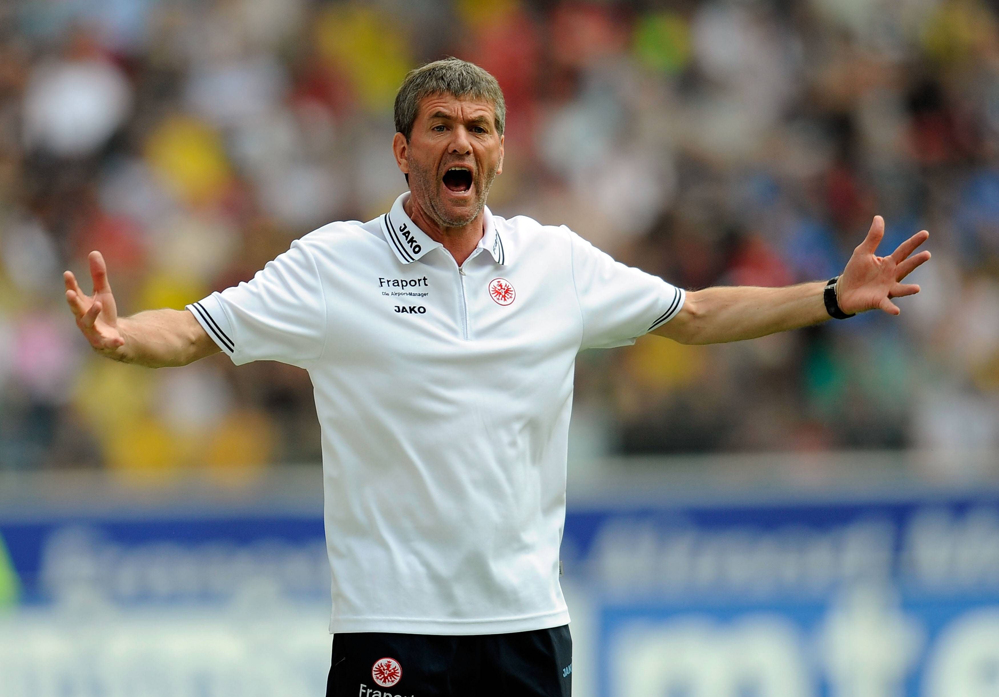 Als Trainer blieb ihm dieser Erfolg verwehrt. In der Saison 2023/2024 scheiterte er knapp mit Zweitligist Kaiserlautern am Doublesieger Bayer Leverkusen. Mit dem MSV Duisburg (97/98) und Eintracht Frankfurt (05/06) scheiterte er ebenfalls erst im Endspiel.2024 Getty Images