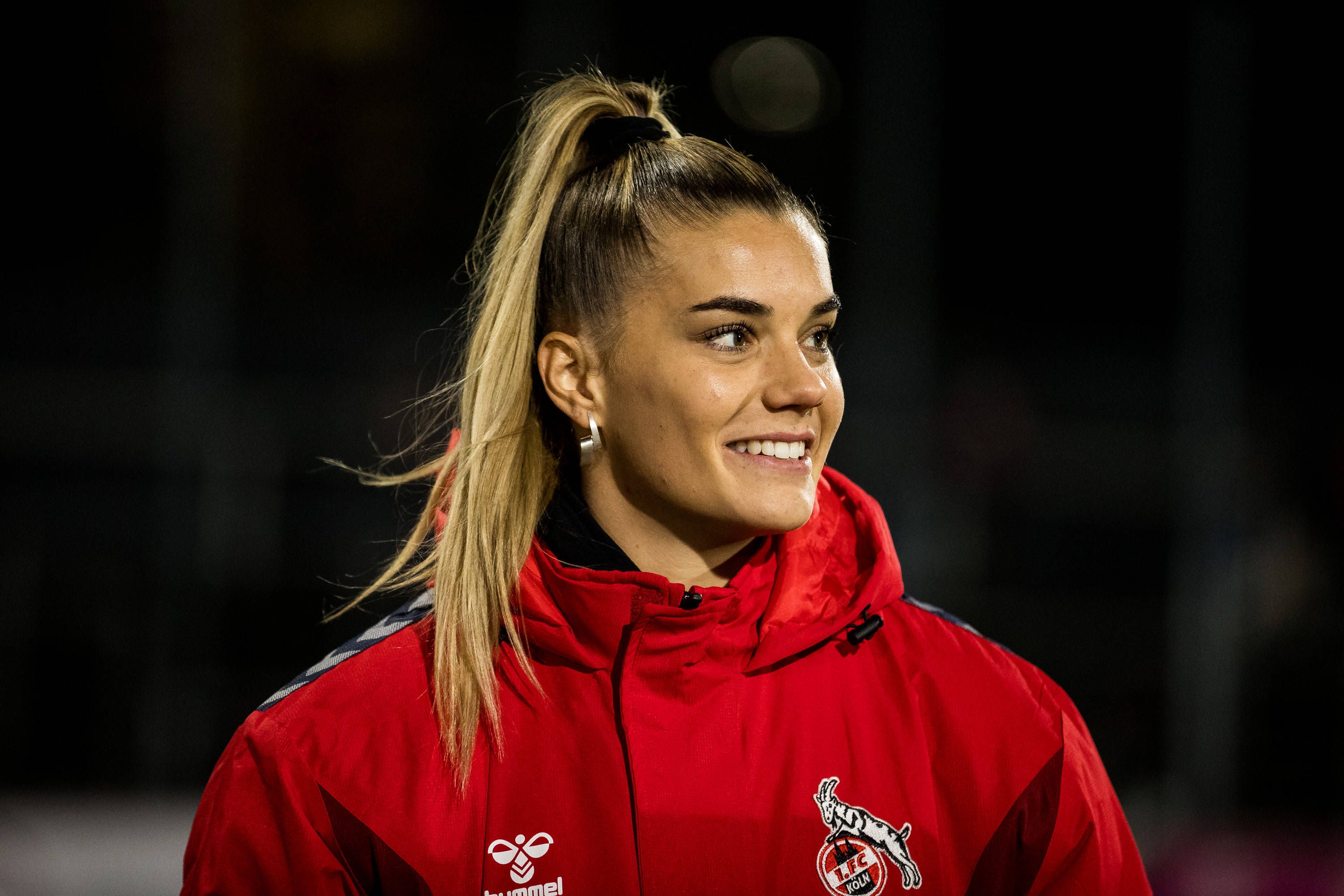 GOOGLE Pixel Frauen-Bundesliga: 1. FC Koeln - TSG Hoffenheim; 13.11.2023 Selina Cerci (1. FC Koeln, 29) im Interview GOOGLE Pixel Frauen-Bundesliga: 1. FC Koeln - TSG Hoffenheim, Koeln, Franz-Kreme...