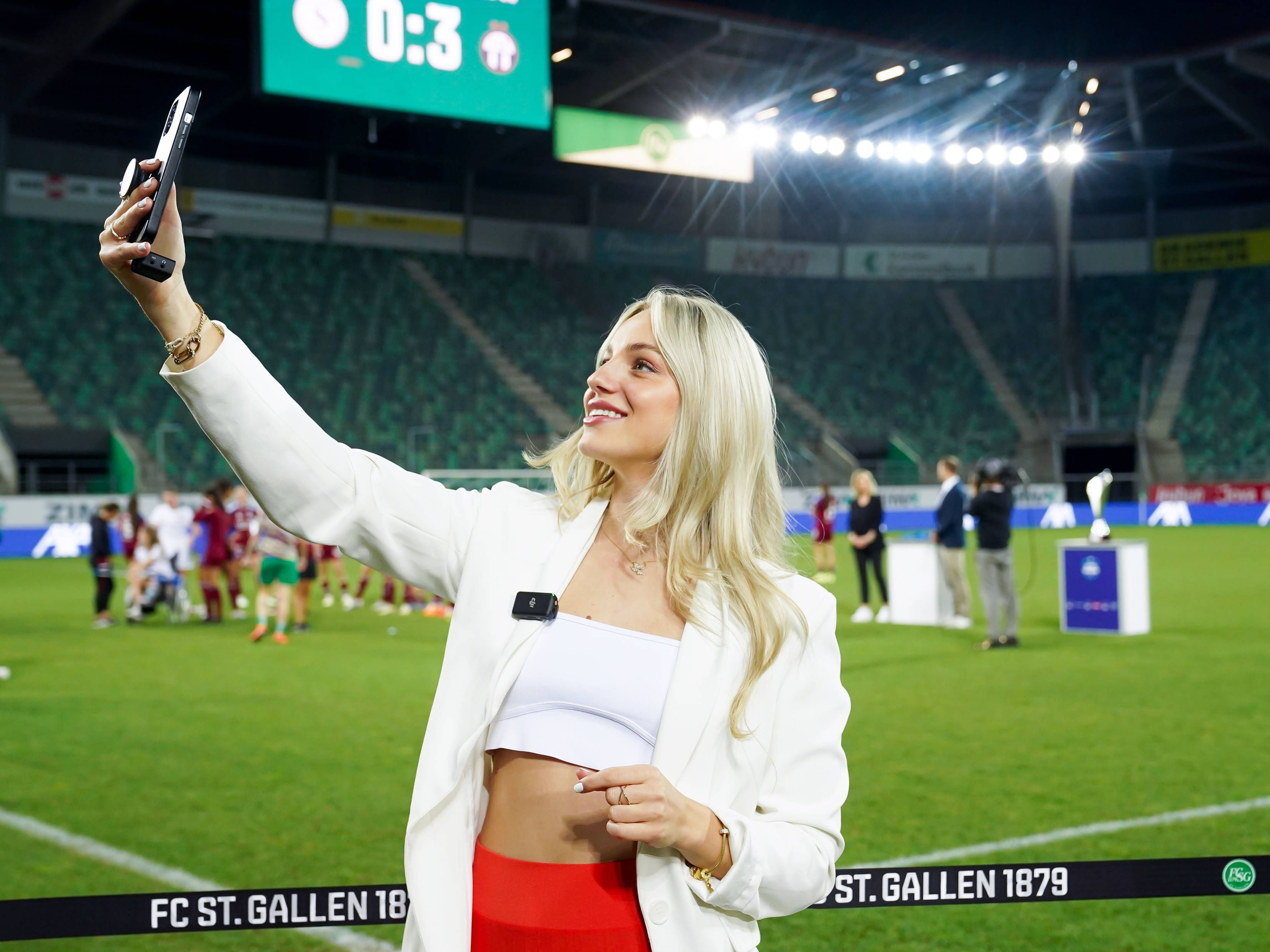 02.06.2023, St. Gallen, Kybunpark, Women s Super League Final: Servette FC Chênois Fà minin - FC Zürich Frauen, 7 Ana Maria Markovic (GC) during a live social media stream for AXA St. Gallen kybun...