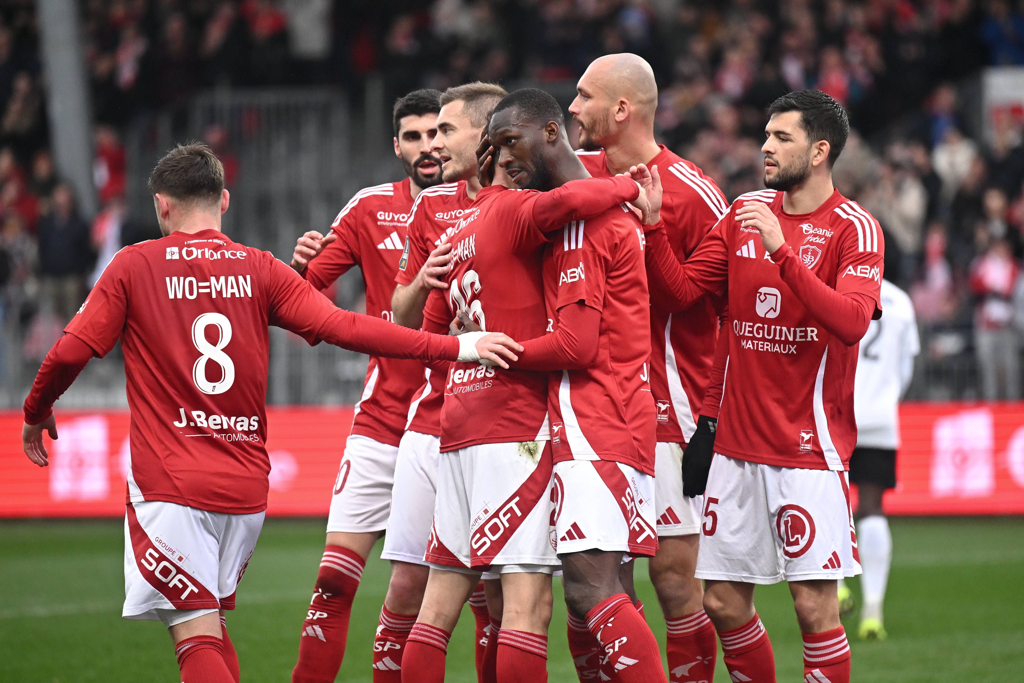 Stade Brestois 29 v Angers SCO - Ligue 1 McDonald s 2024 2025 05 Brendan CHARDONNET (sb29) - 17 Abdallah SIMA (sb29) - 25 Julien LE CARDINAL (sb29) - 19 Ludovic AJORQUE (sb29) during the Ligue 1 Mc...
