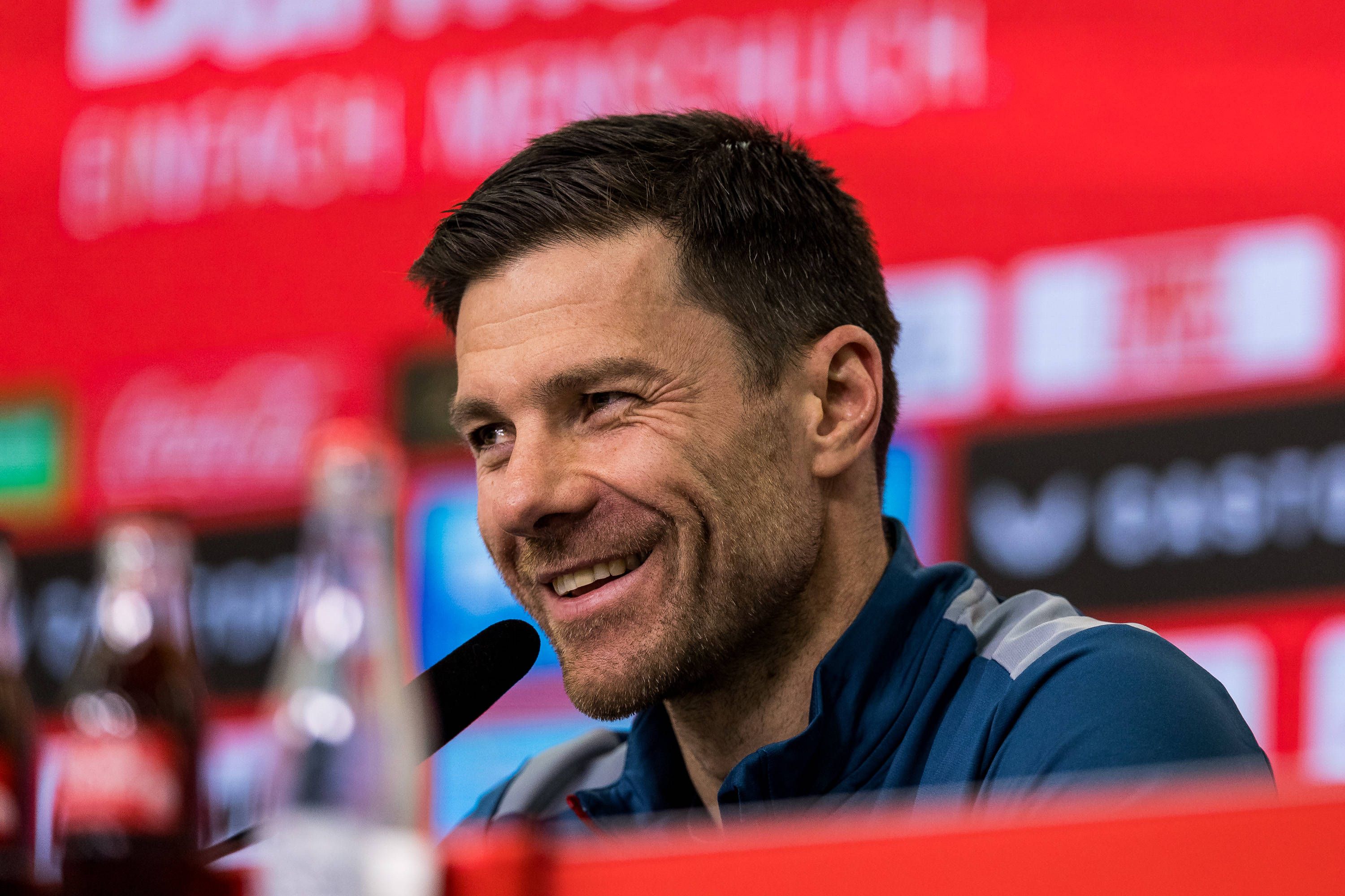 Pressekonferenz Bayer 04 Leverkusen; 15.03.2024 Xabi Alonso (Trainer Bayer 04 Leverkusen) lachend Pressekonferenz Bayer 04 Leverkusen, BayArena Leverkusen am 15.03.2024 *** Press conference Bayer 0...
