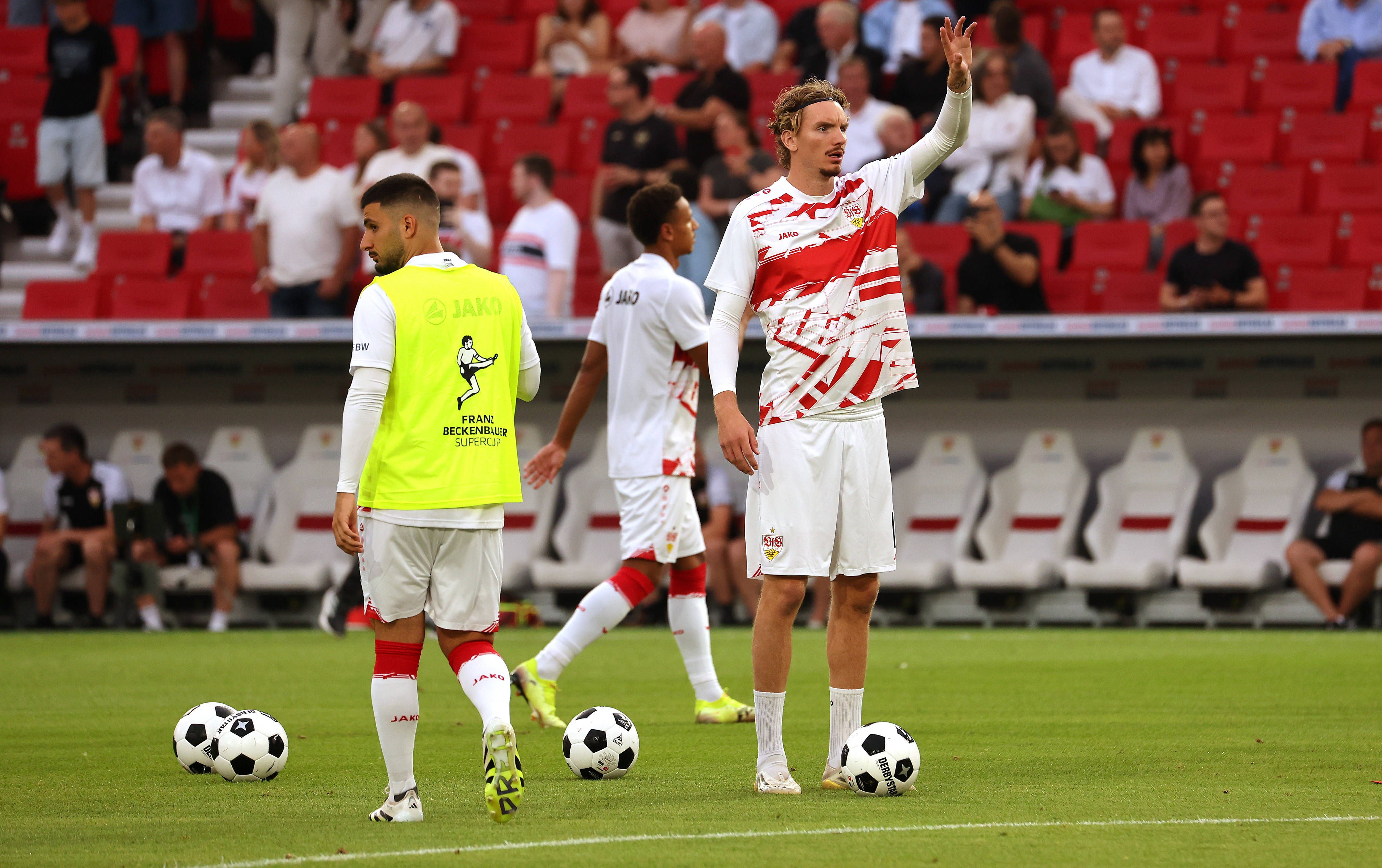 BAU 16.08.2025 Stuttgart Fußball Franz Beckenbauer Supercup VfB Stuttgart vs. FC Bayern München, v.l. Deniz Undav, Nick Woltemade (VfB) *** BAU 16 08 2025 Stuttgart Soccer Franz Beckenbauer Supercu...