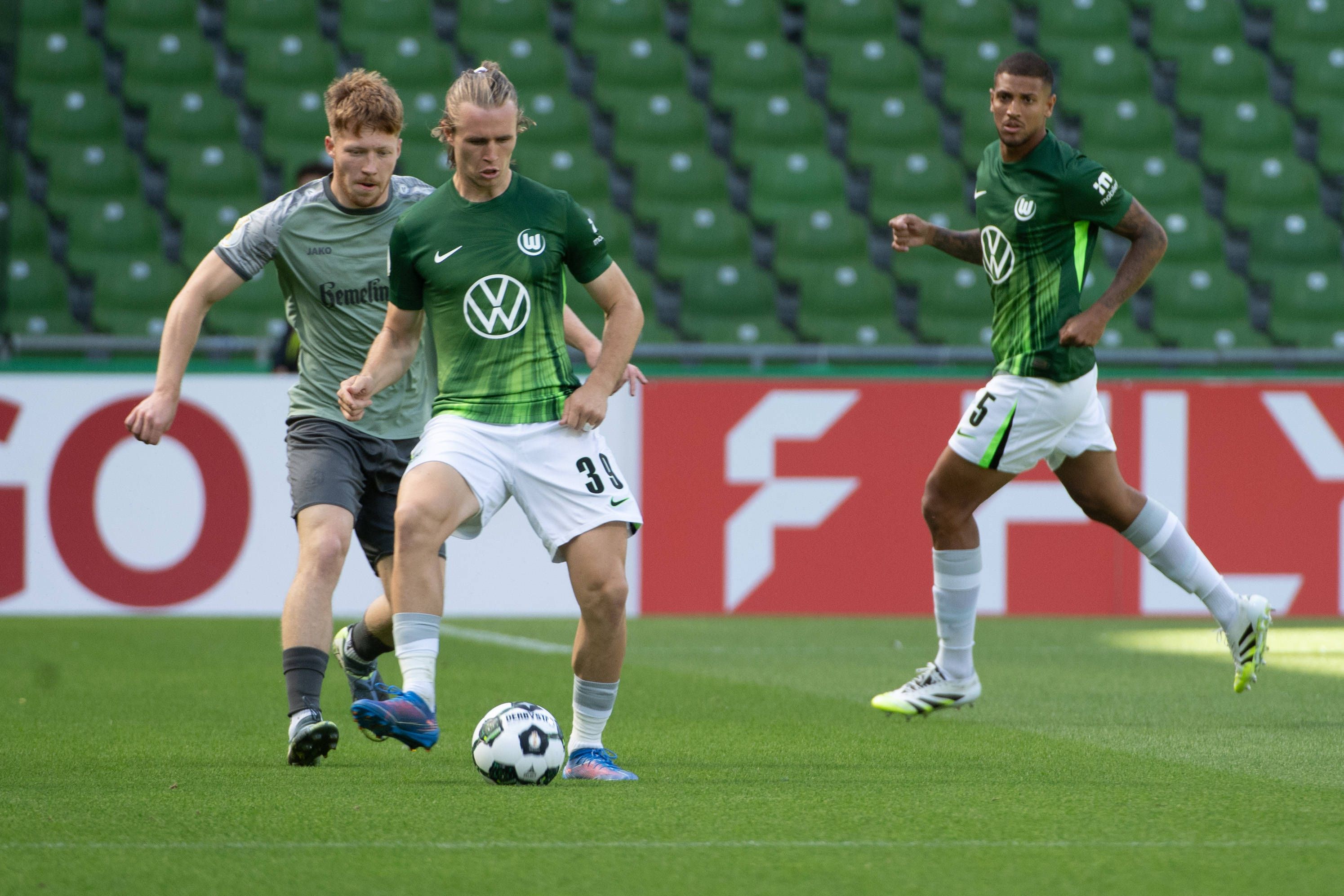 GER, Fussball, DFB Pokal, 1.Runde, SV Hemelingen vs VfL Wolsburg 16.08.2025, Weserstadion, Bremen, GER, DFB - Pokal 01. Runde, SV Hemelingen vs VfL Wolfsburg DFB- Regionalliga West regulations proh...