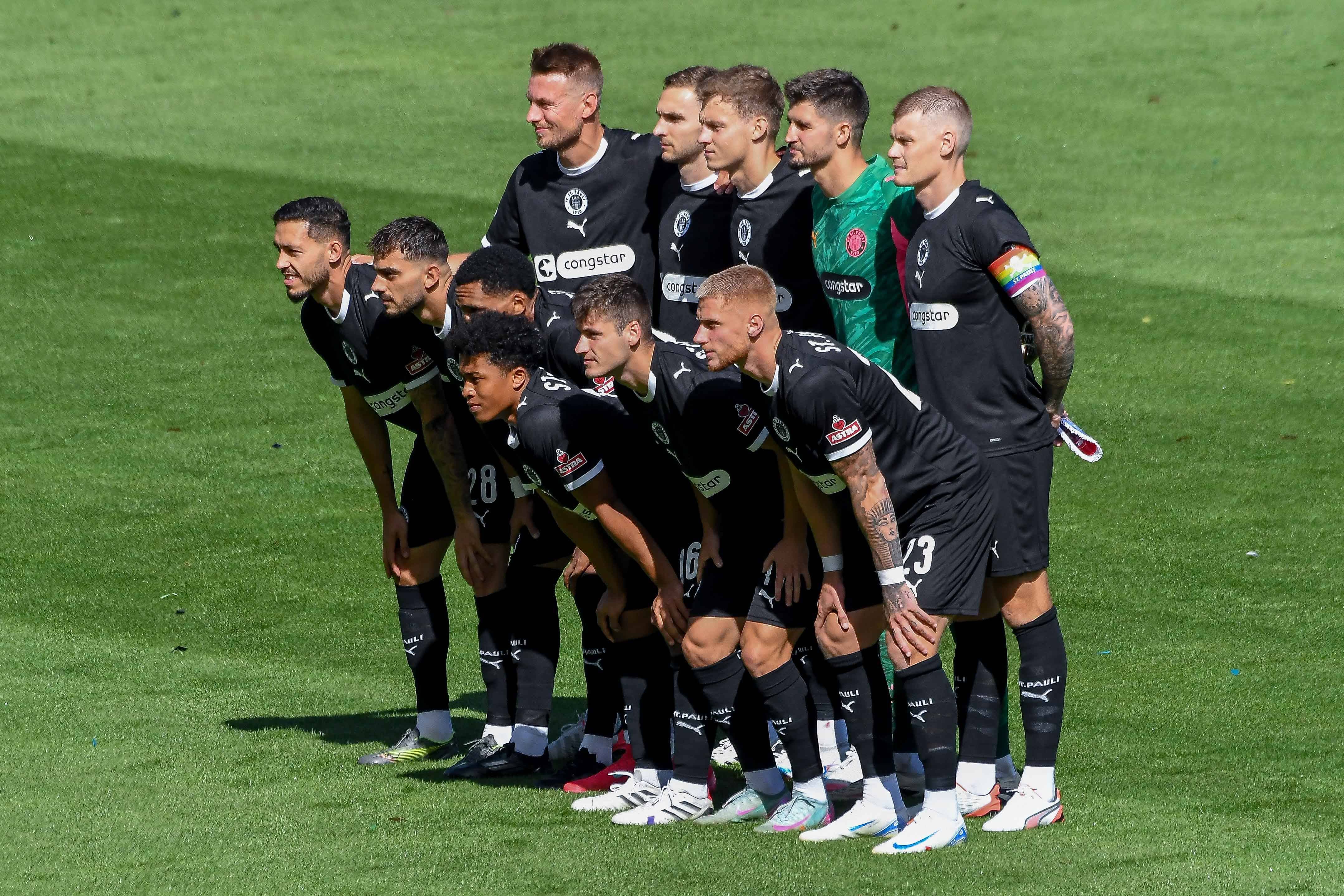 Mannschaftsfoto Startelf Hintere Reihe Hauke Wahl James Sands Nemeth David Nikola Vasilj Eric Smith vordere Reihe Mathias Pereira Lage Andréas Hountondji Joel Chima Fujita Arkadiusz Pyrka Louis Opp...