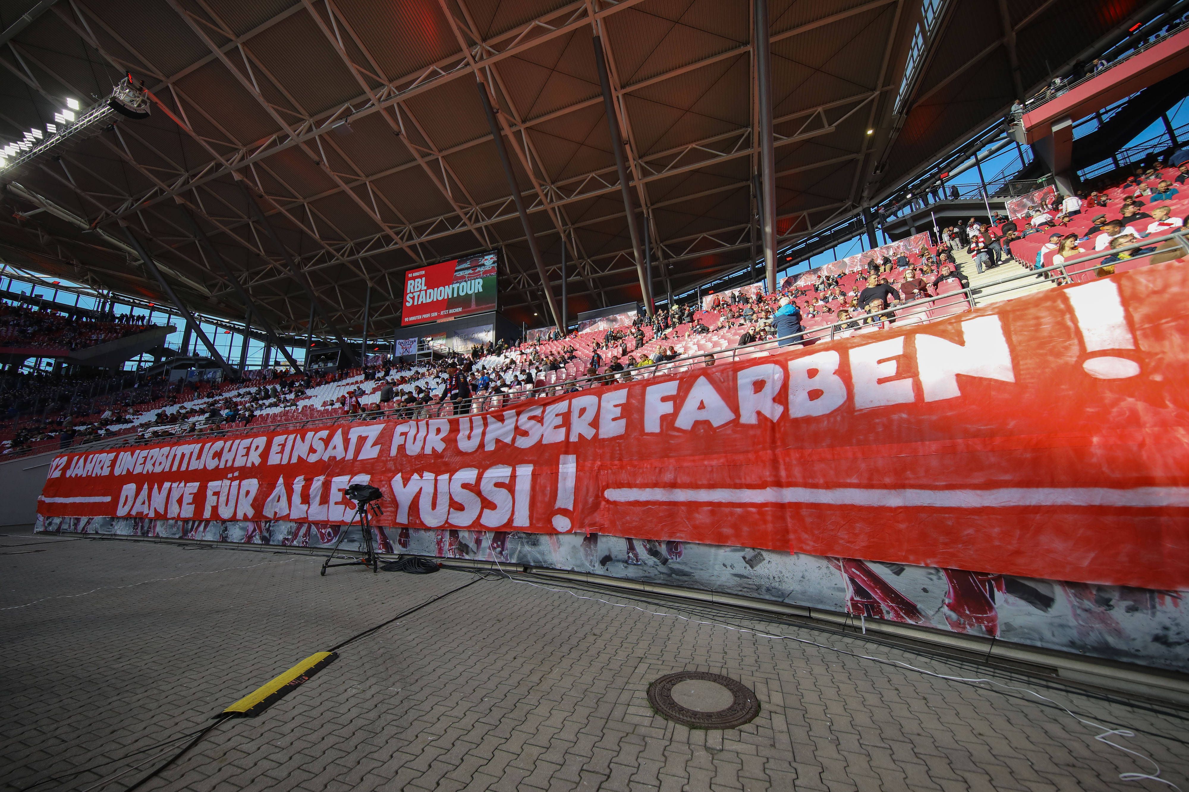RB-Geschäftsführer Johann Plenge, Red Bull-Chef Oliver Mintzlaff und RB-Geschäftsführer Sport Marcel Schäfer verabschiedeten den 31-Jährigen noch einmal offiziell vor den eigenen Fans.Picture Point LE