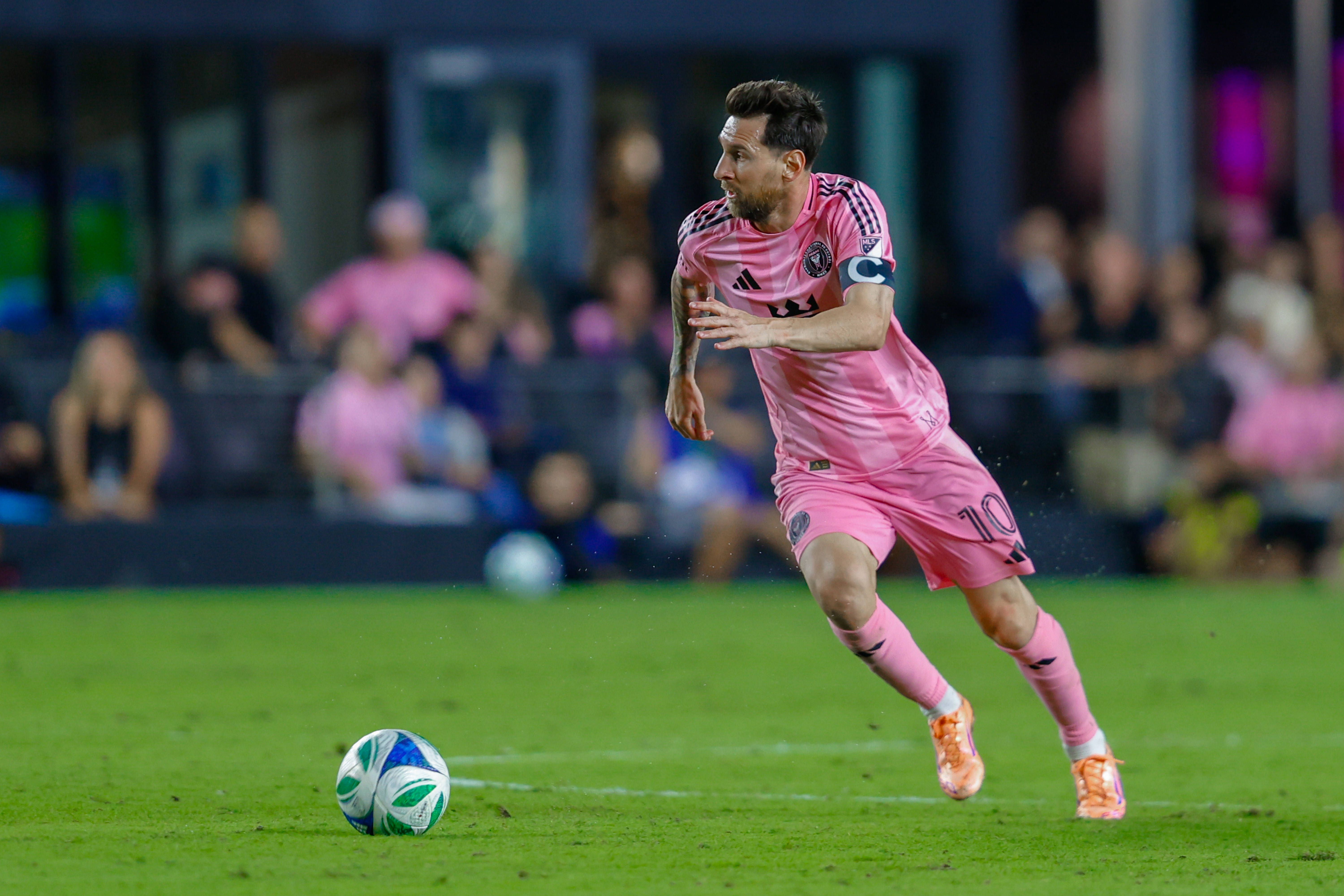 FT. LAUDERDALE, FL - OCTOBER 24: Inter Miami forward Lionel Messi (10) controls the ball in the second half during a MLS, Fussball Herren, USA Cup Playoff match between Inter Miami CF and Nashville...