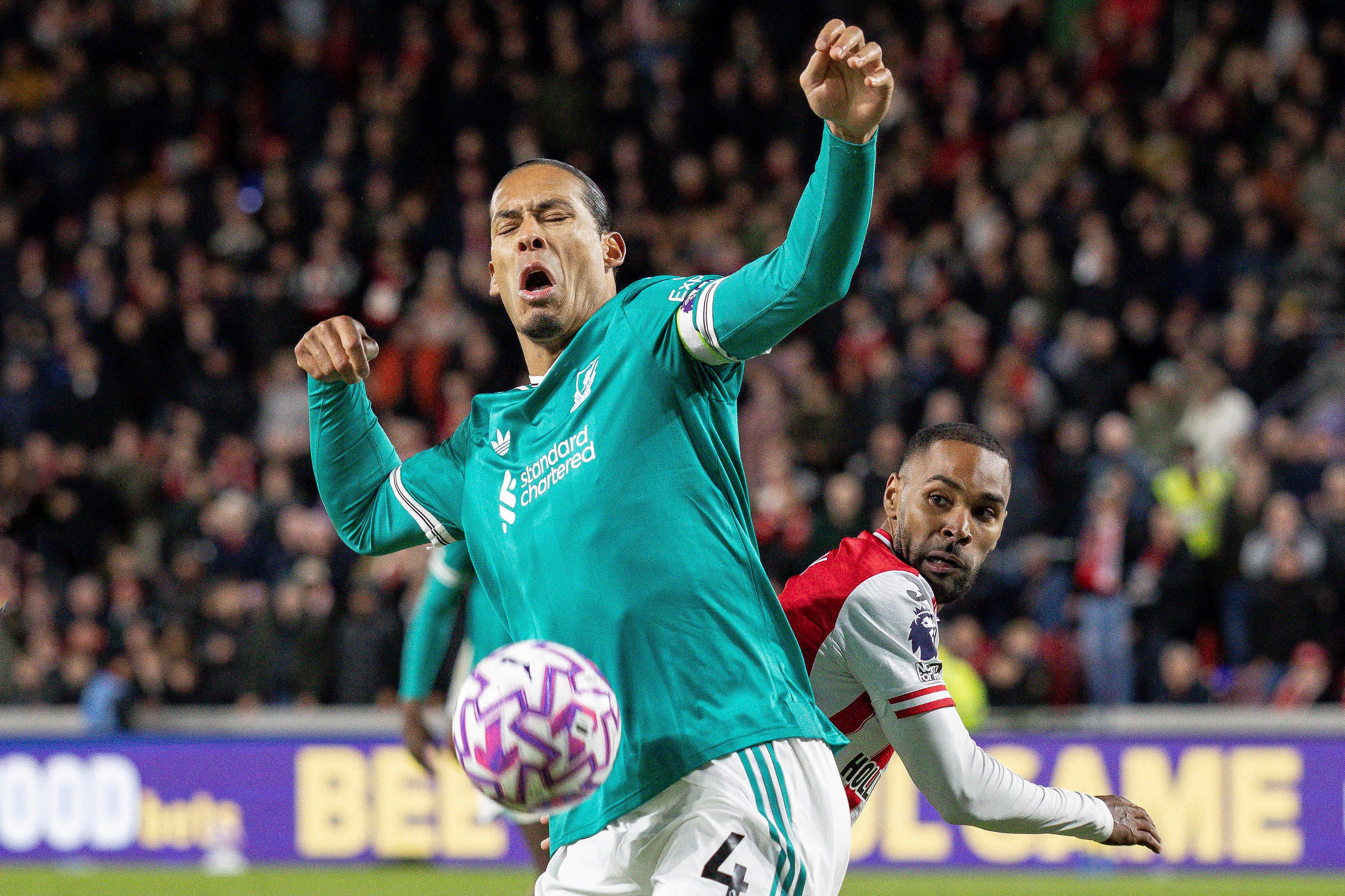 Premier League Brentford v Liverpool Virgil van Dijk of Liverpool controls the ball during the Premier League match Brentford vs Liverpool at The Gtech Community Stadium, London, United Kingdom, 25...