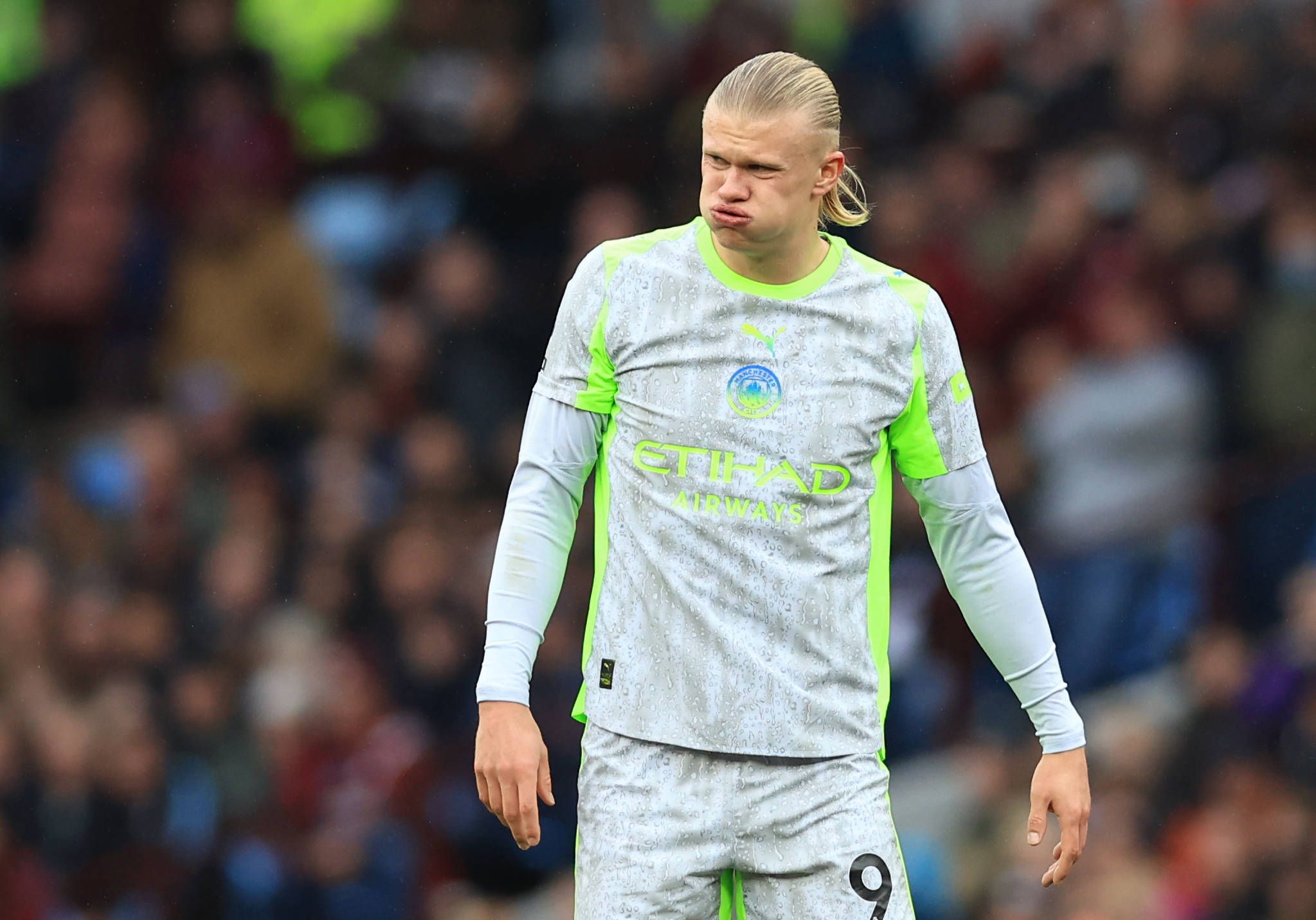 Birmingham, England, 26th October 2025. Erling Haaland of Manchester City frustrated during the Aston Villa vs Manchester City Premier League match at Villa Park, Birmingham. Picture credit should ...