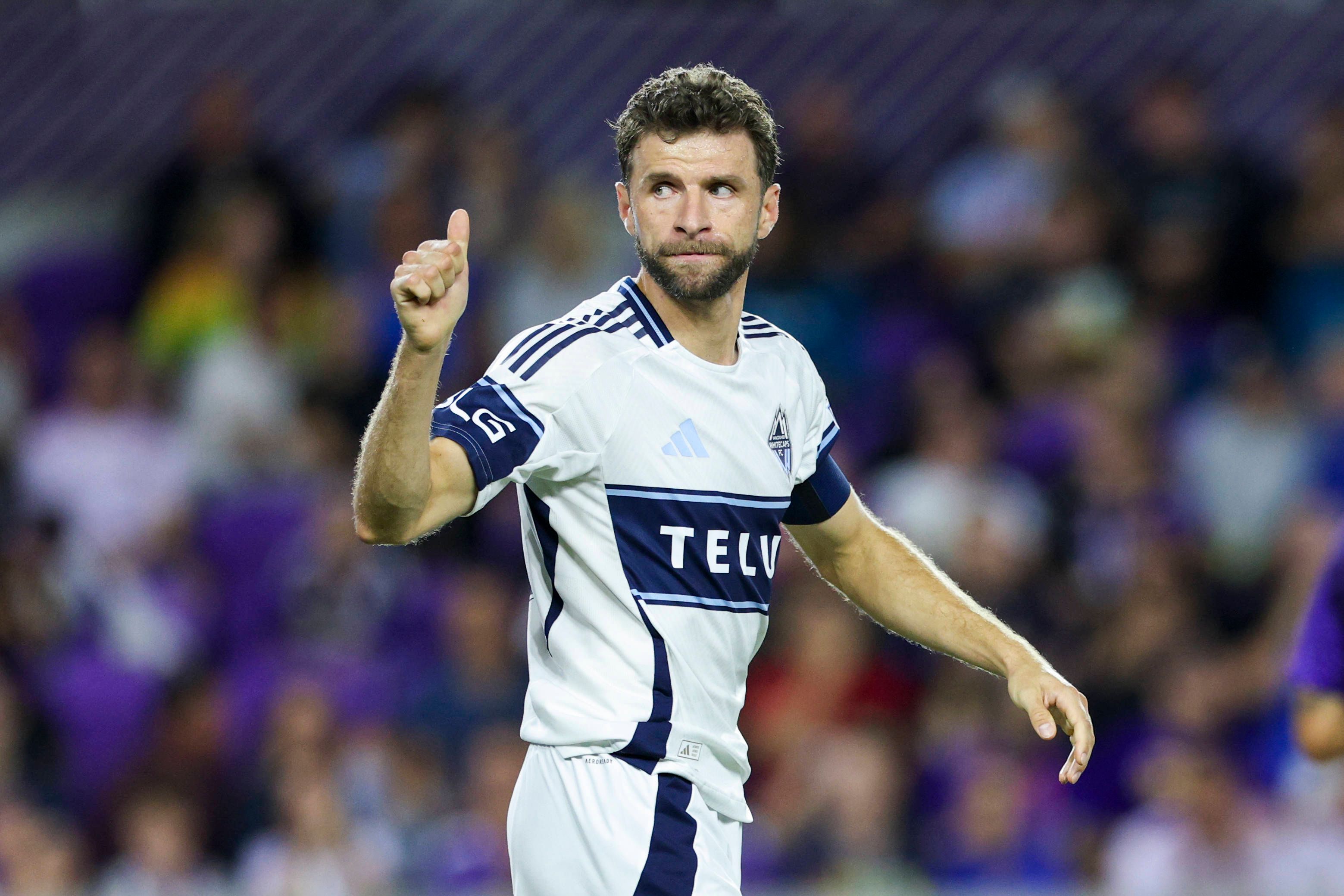 MLS, Fussball Herren, USA Vancouver Whitecaps FC at Orlando City Oct 11, 2025; Orlando, Florida, USA; Vancouver Whitecaps forward Thomas Müller (13) reacts after a play against Orlando City in the ...