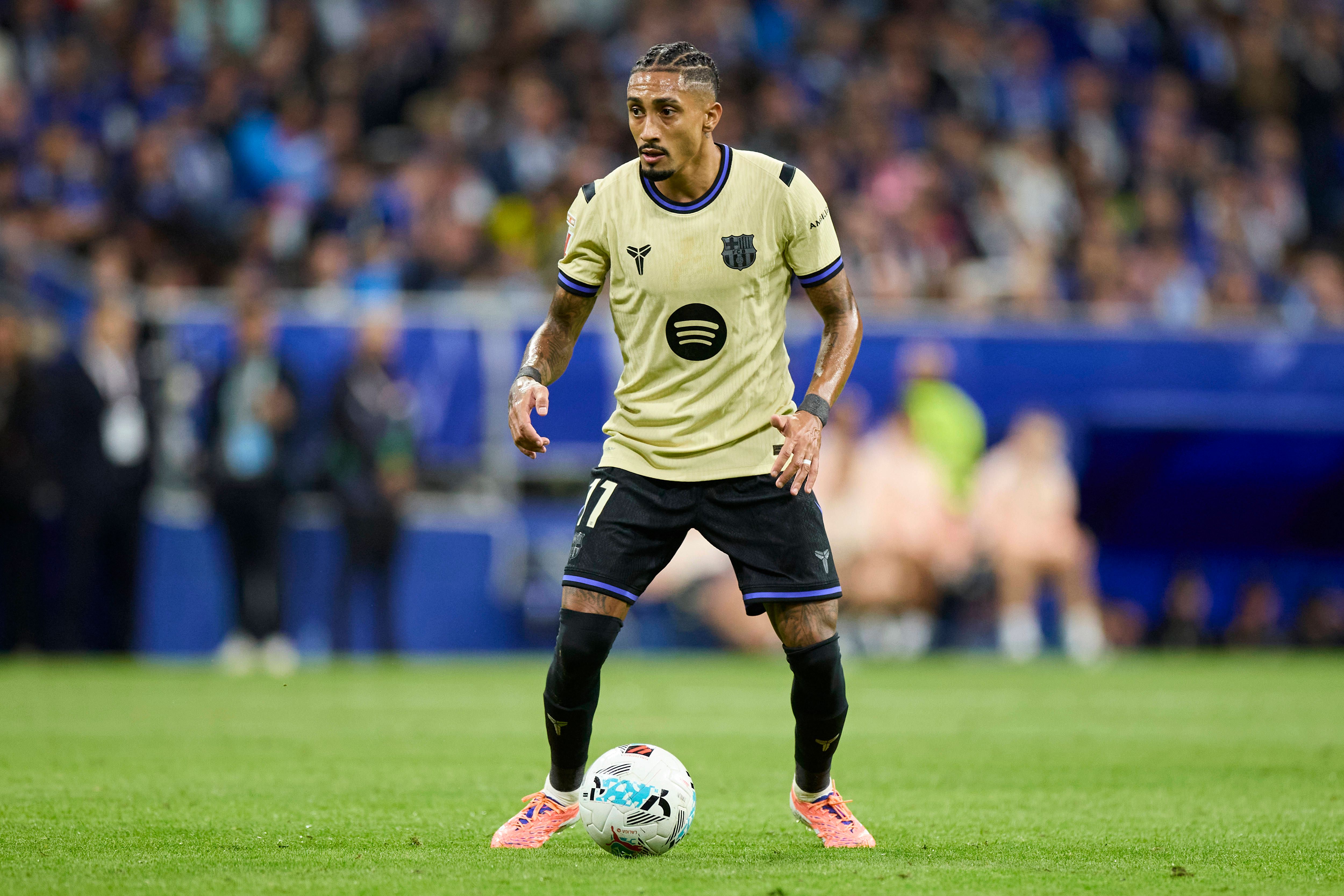 Real Oviedo v FC Barcelona, Barca - LaLiga EA Sports Raphael Dias Belloli Raphinha of FC Barcelona in action during the LaLiga EA Sports match between Real Oviedo and FC Barcelona at Carlos Tartier...
