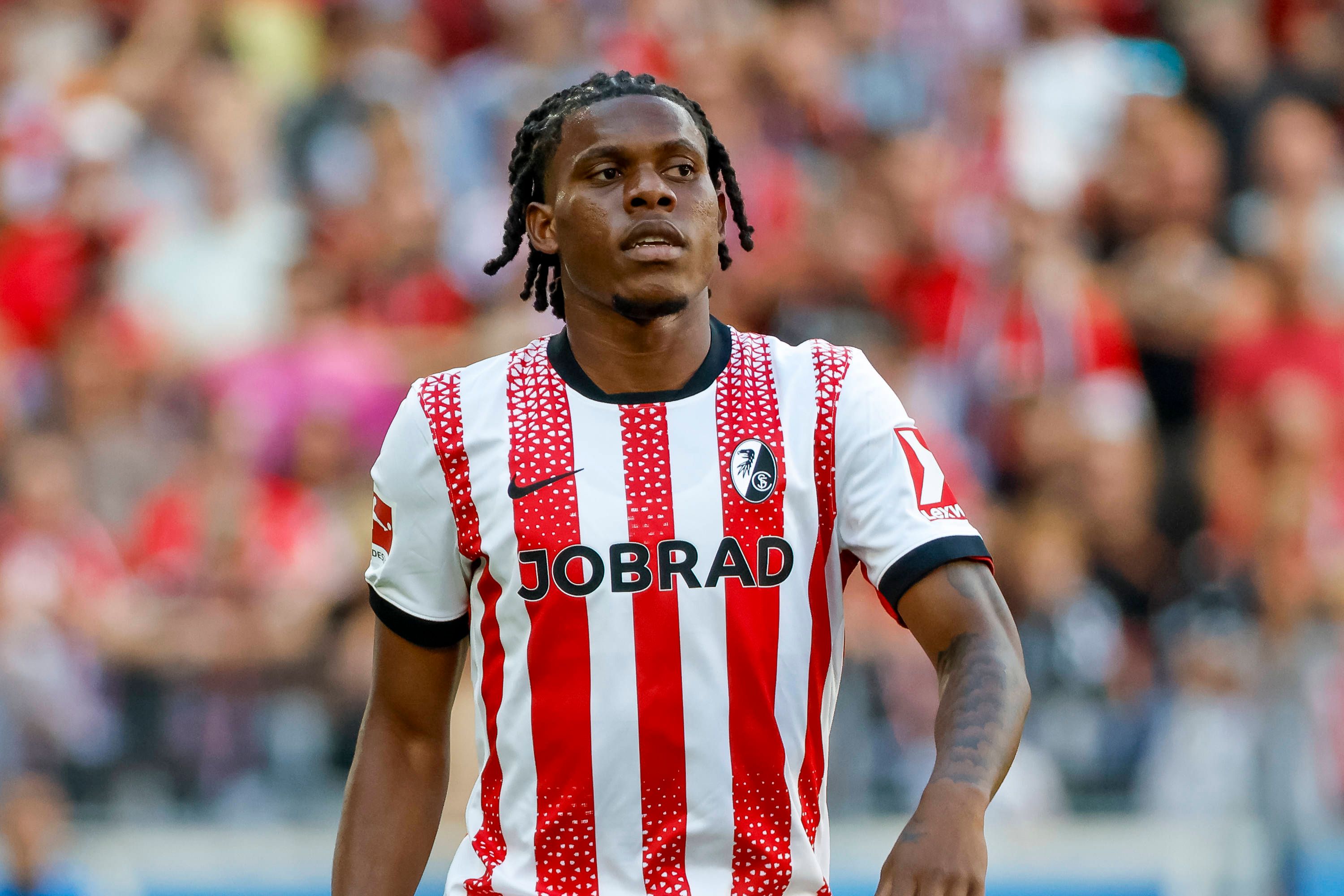 Cyriaque Irie (SC Freiburg, 22) , Deutschland, Fussball, 1. Bundesliga, 1.Spieltag, 2025 2026, SC Freiburg vs. FC Augsburg, 23.08.2025, Europa-Park Stadion, Freiburg im Breisgau, Deutschland Freibu...