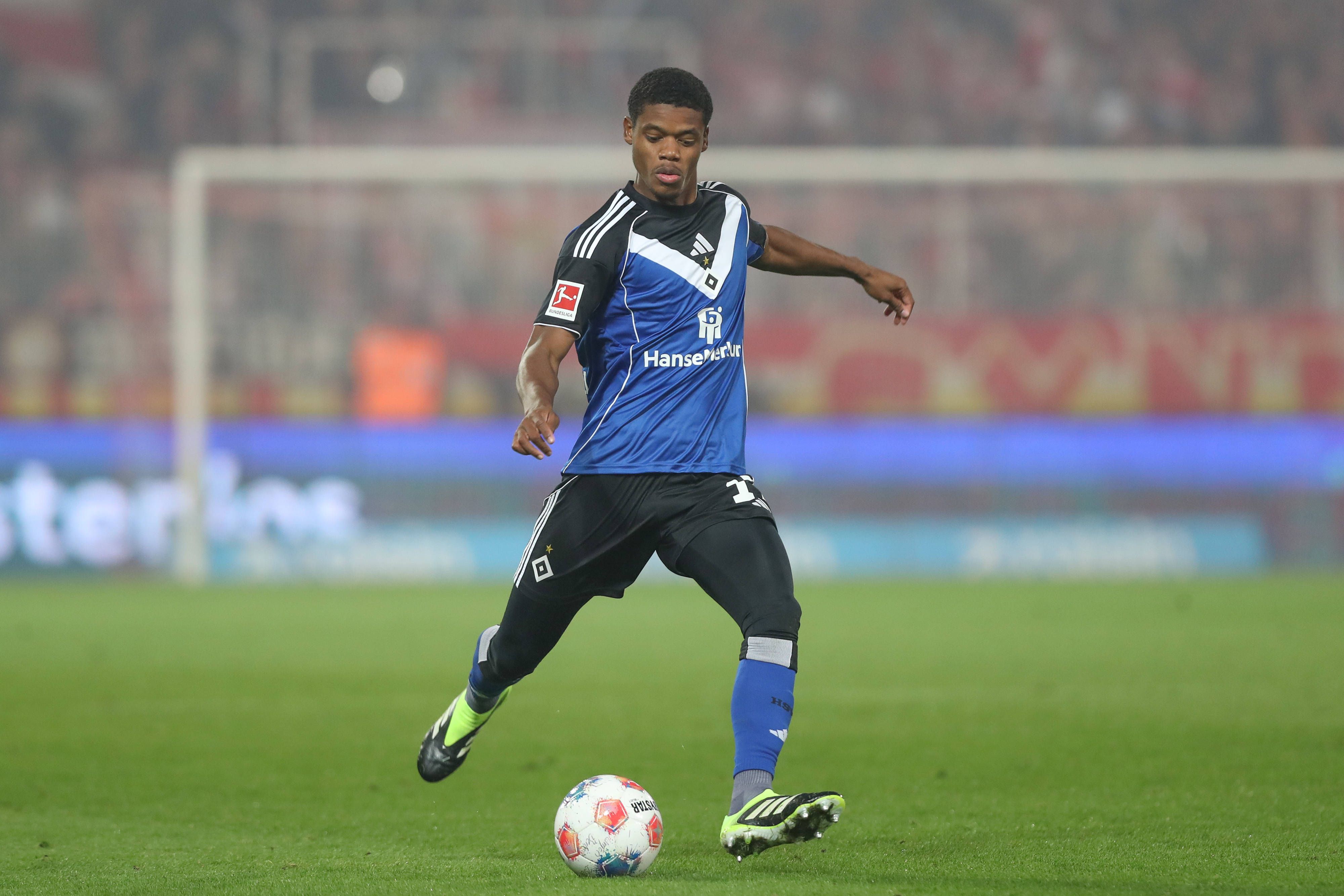 28.09.2025, xtgx, Fussball 1. Bundesliga, 1. FC Union Berlin - Hamburger SV emspor, v.l. Warmed Omari (HSV, 17) Freisteller, Einzelbild, Ganzkoerper, single frame (DFL DFB REGULATIONS PROHIBIT ANY ...