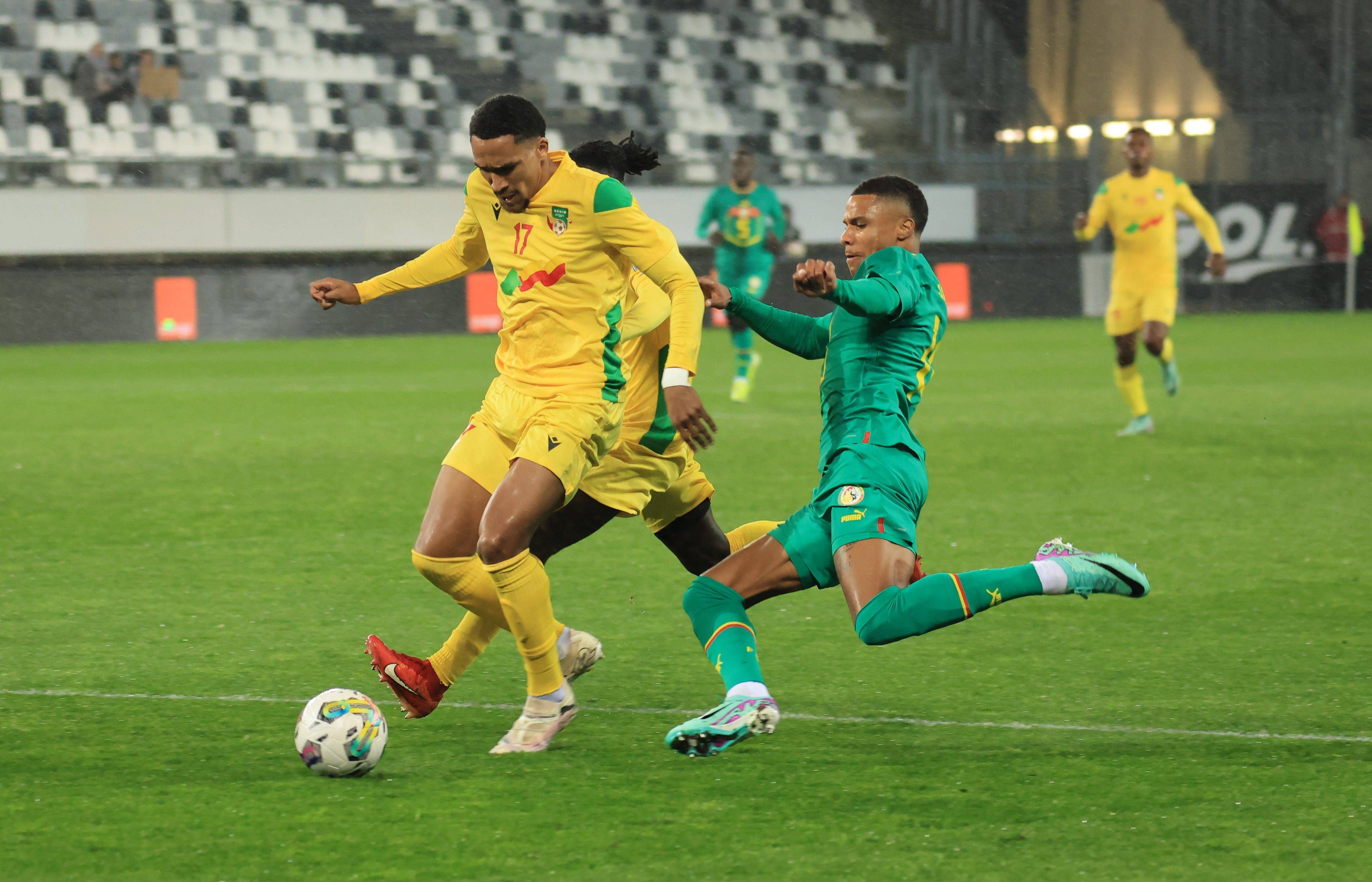 Foot match amical Sénégal vs Benin PHOTOPQR LE COURRIER PICARD HASLIN ; Amiens ; 26 03 2024 ; 26 03 24 Foot match amical Sénégal vs Benin au stade de la Licorne d Amiens Andreas HOUNTONDJI (Benin) ...