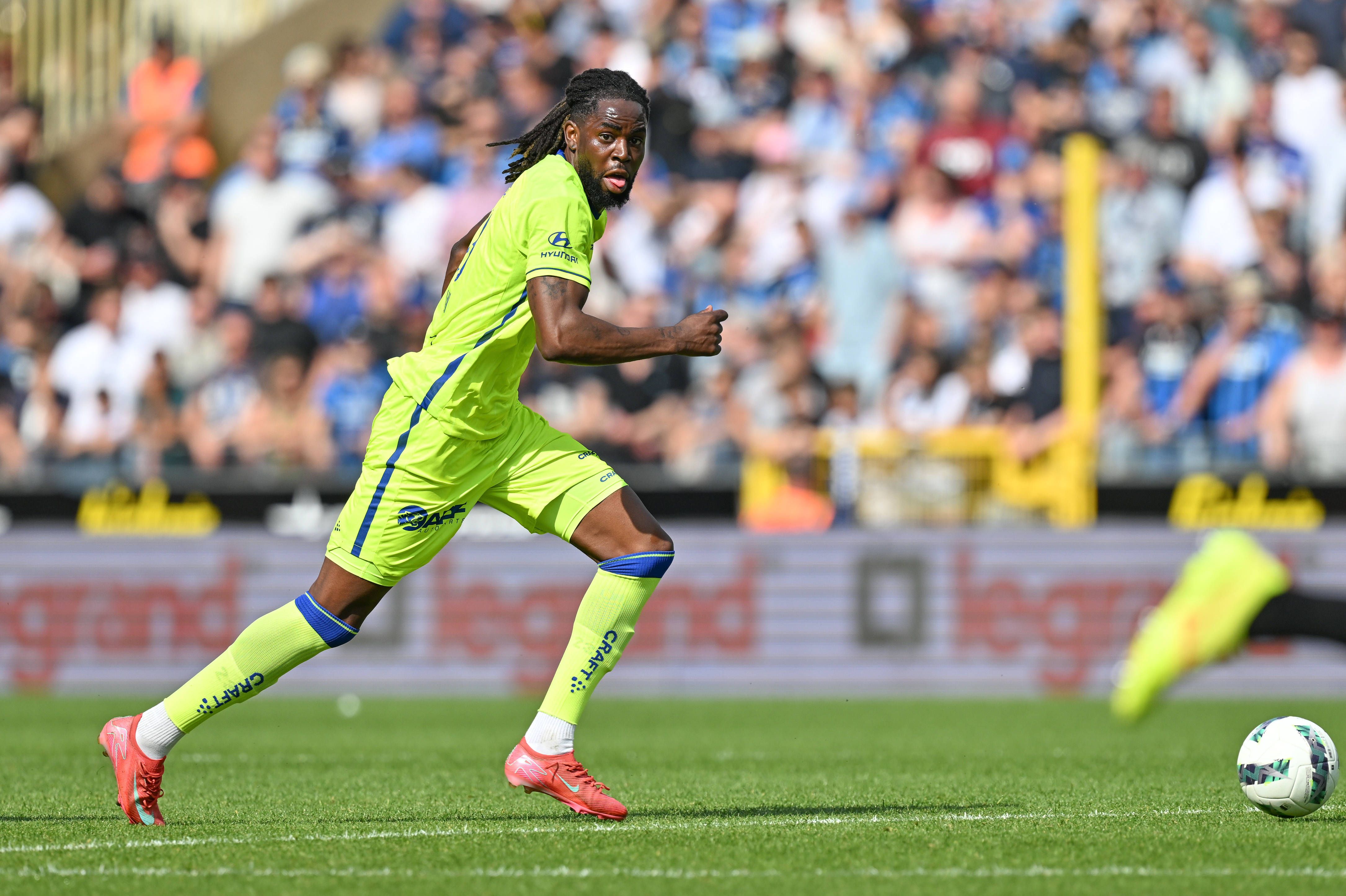 250501 Club Brugge vs AA Gent Jordan Torunarigha (23) of AA Gent pictured during the Jupiler Pro League season 2024 - 2025 matchday 7 in the Champions Play offs between Club Brugge KV and AA Gent o...