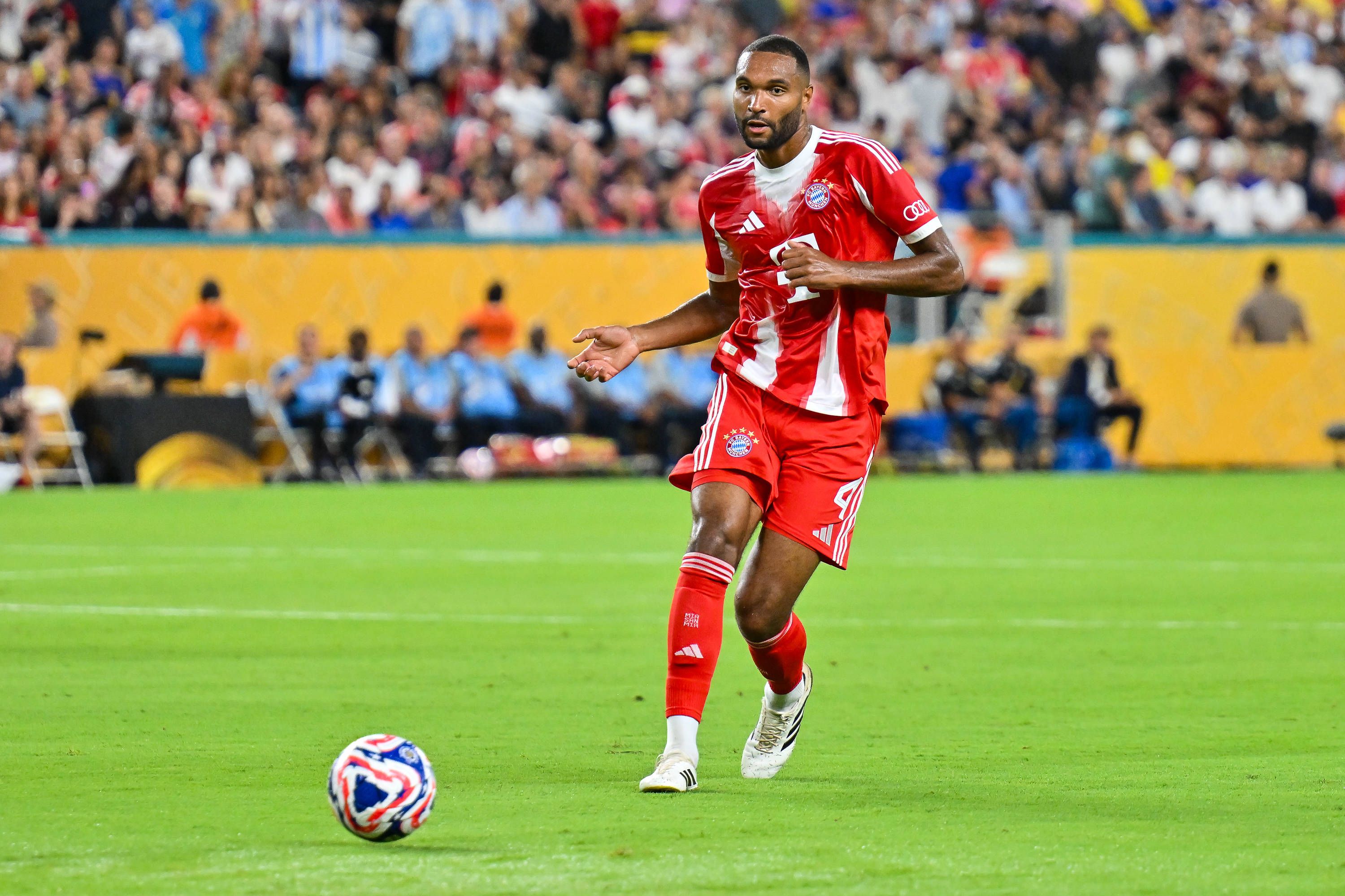 FIFA Club World Cup; FC Bayern München - Boca Juniors; 20.06.2025 am Ball Jonathan TAH (FC Bayern Muenchen 4) Einzelfoto Freisteller FIFA Club World Cup: FC Bayern Muenchen - Boca Juniors, Hard Roc...