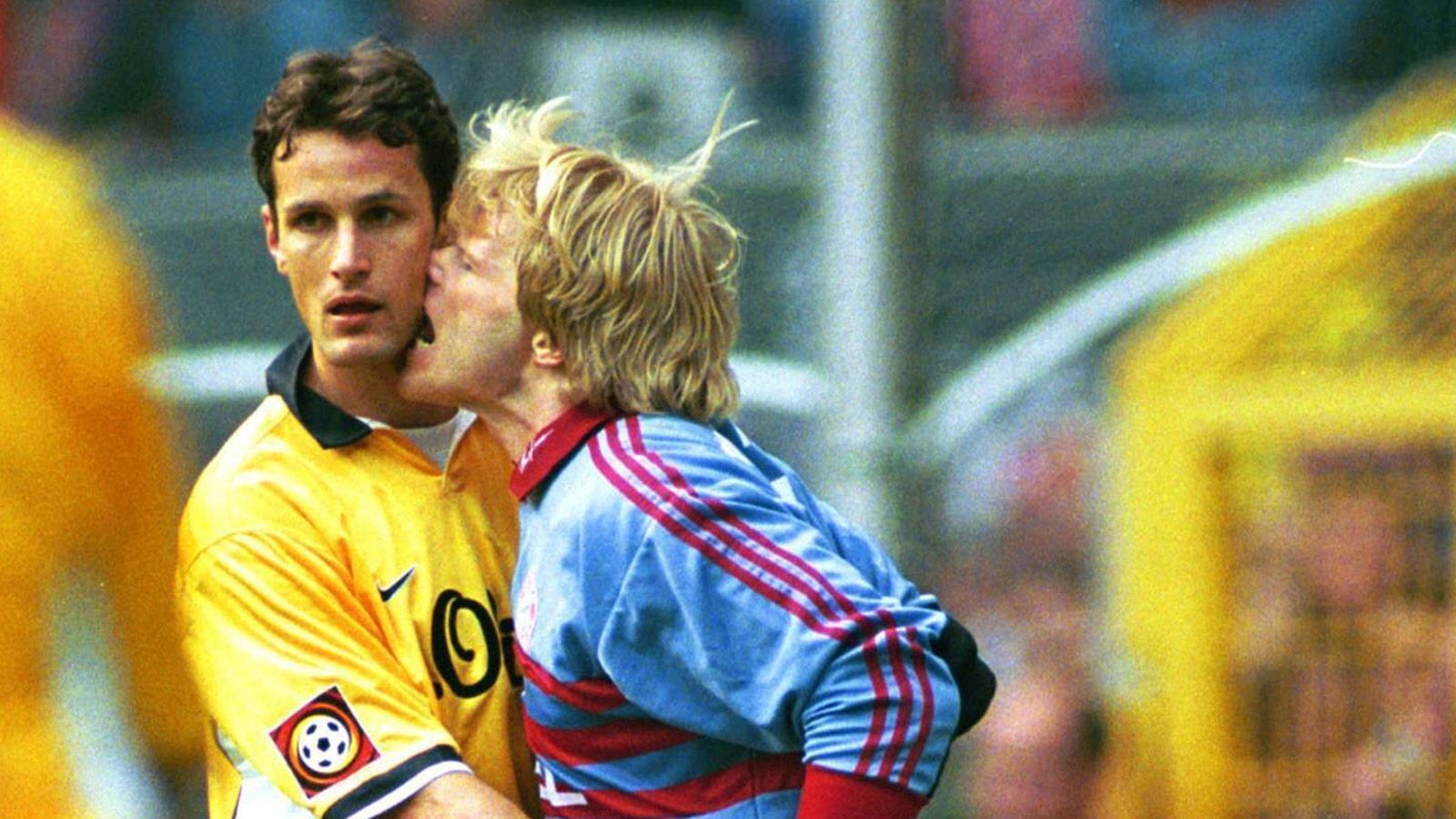 ... dann die Beiß-Attacke gegen Heiko Herrlich. Die Münchner gleichen noch zum 2:2 aus, Lars Ricken verschießt gegen Kahn einen Elfmeter. Oliver Kahn, als Kung-Fu-Treter, Mike Tyson 2 und Elfer-Killer - ganz sicher der Mann des Spiels.imago sportfotodienst