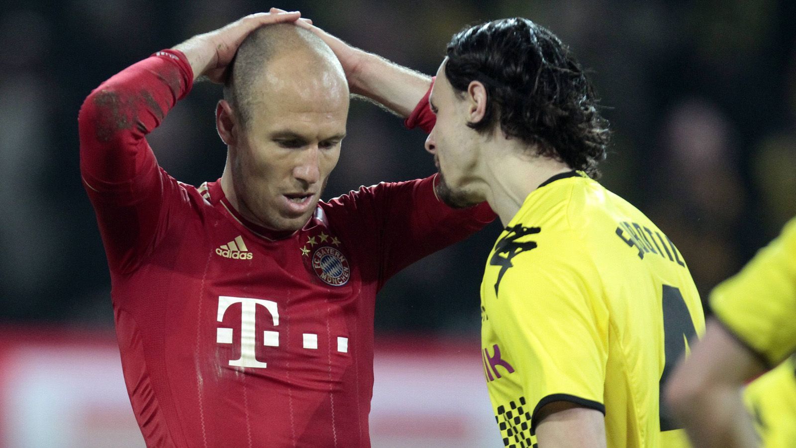 Dortmund führt gegen Bayern mit 1:0. Es geht um die Meisterschaft. Wenn die Bayern den BVB im Titelrennen noch abfangen wollen, muss ein Sieg her. In der Schlussphase gibt es Elfer für den FCB, Robben tritt an - und verballert. Die hämische Reaktion von Neven Subotic ist in die jüngere Bundesliga-Geschicht eingegangen.imago sportfotodienst