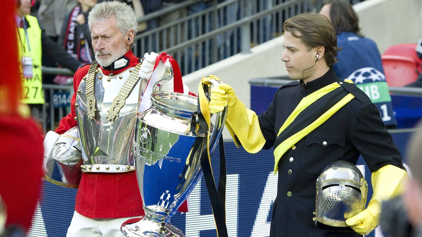 Vor dem ersten rein deutschen Finale in der "Königsklasse" inszenieren die Engländer im Wembley Stadion eine große Show. Lars Ricken und Paul Breitner als Vertreter der Klubs erscheinen im Ritterkostüm. Eine sehr skurrile Szene, die den Höhepunkt der Rivalität zwischen den beiden Vereinen einleitet.imago sportfotodienst