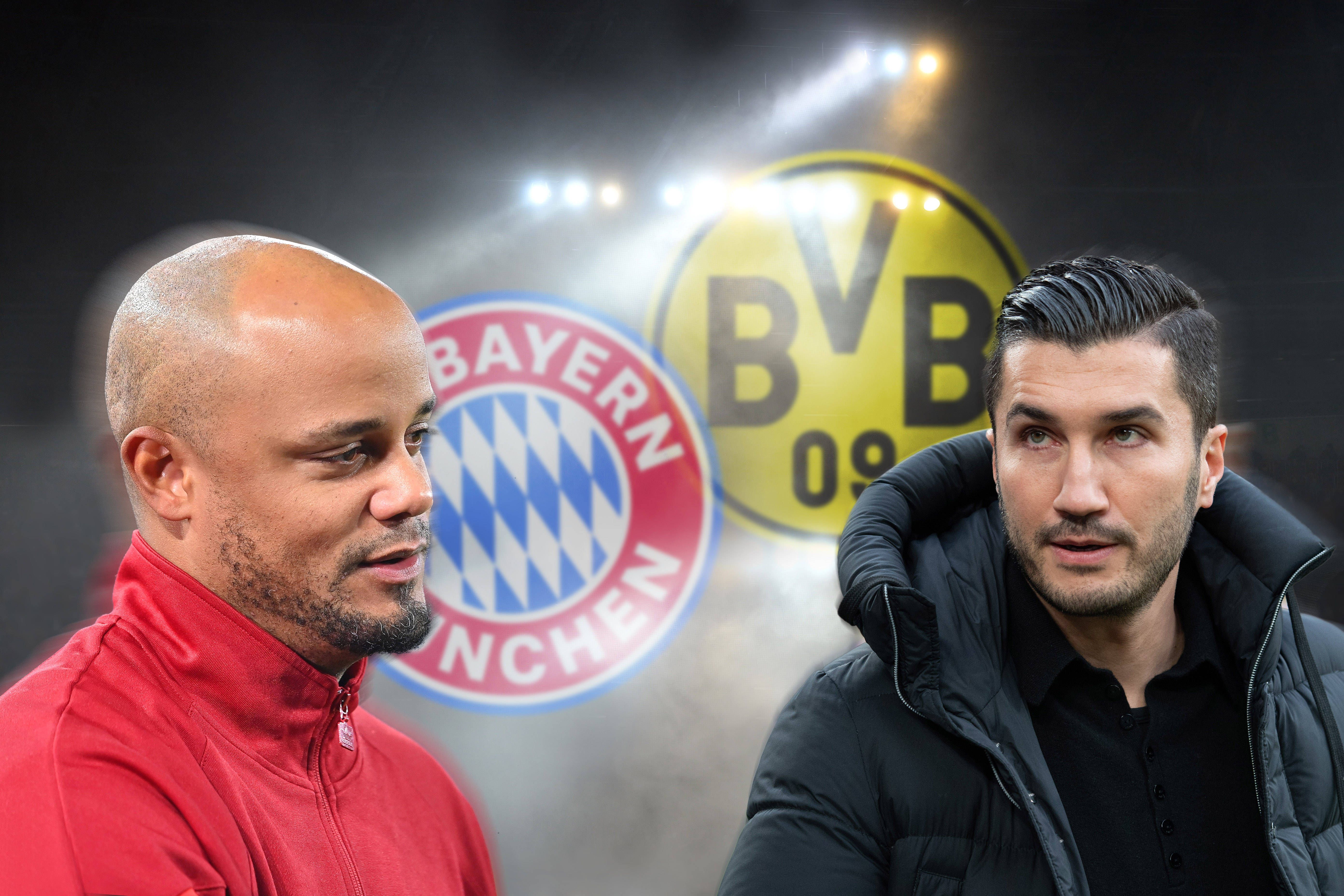 Vorschau Borussia Dortmund -FC Bayern Muenchen am 30.11.2024. FOTOMONTAGE:v.li:Trainer Vincent KOMPANY (Bayern Muenchen) und Nuri SAHIN (Trainer Borussia Dortmund) treffen aufeinander Fussball 1. B...