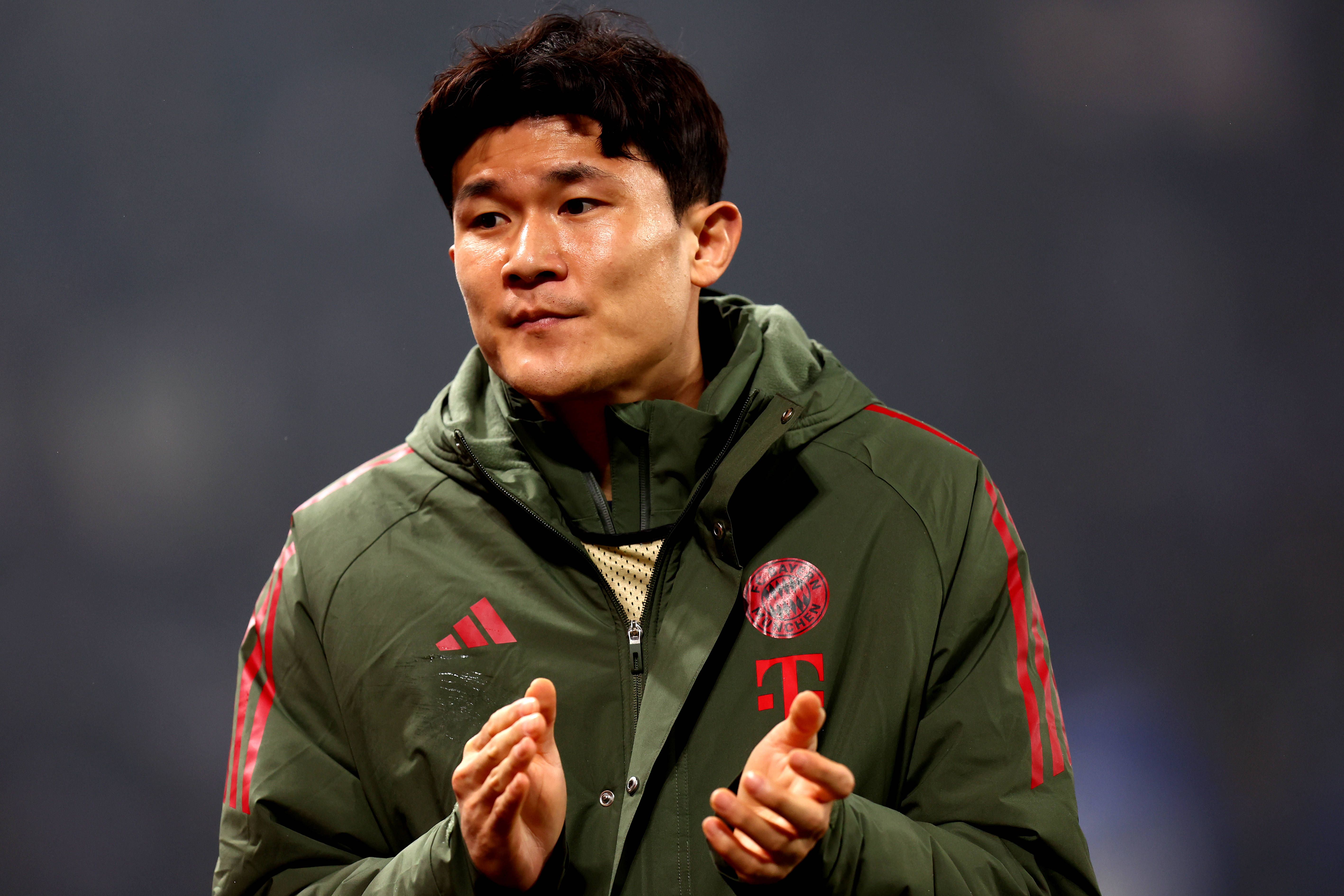 Atalanta Bc vs FC Bayern Munchen Kim Min-jae of FC Bayern Munchen celebrates at the end of the UEFA Champions League Phase Round of 16 first leg match between Atalanta BC and between Atalanta BC an...