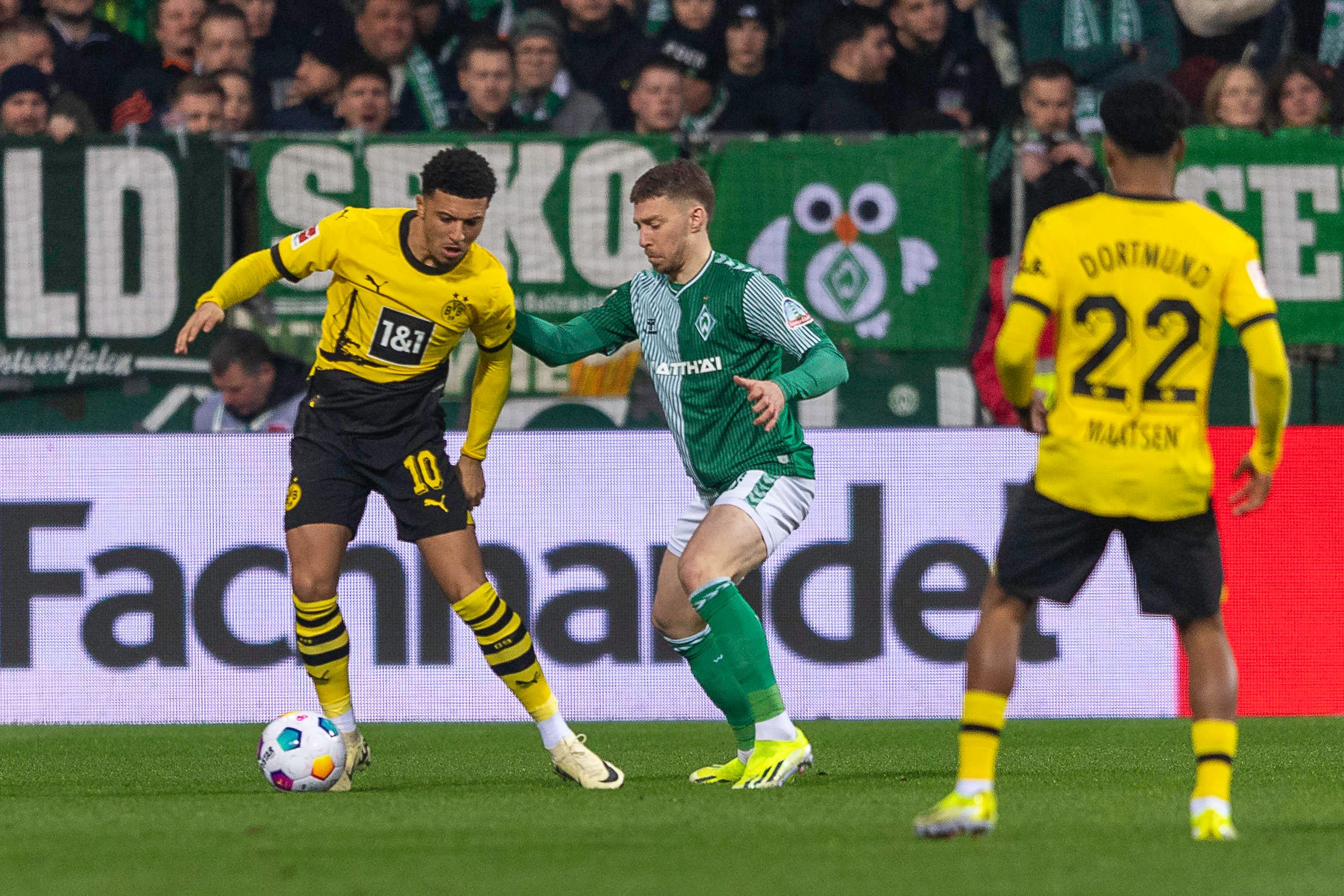 von Daniel Kugler09.03.2024, Fussball, Saison 2023/2024, 1. Bundesliga, 25. Spieltag, SV Werder Bremen - Borussia Dortmund, Jadon Sancho Borussia Dortmund jagt den Ball, Bremen Wohninvest Weserstadion Bremen Deutschland xRHR-FOTO/DEx *** 09 03 2024, Football, Season 2023 2024, 1 Bundesliga, 25 Matchday, SV Werder Bremen Borussia Dortmund, Jadon Sancho Borussia Dortmund chases the ball, Bremen Wohninvest Weserstadion Bremen Germany xRHR PHOTO DEx Copyright: DennisxEwert/RHR-FOTOx RHR-FOTO/DE