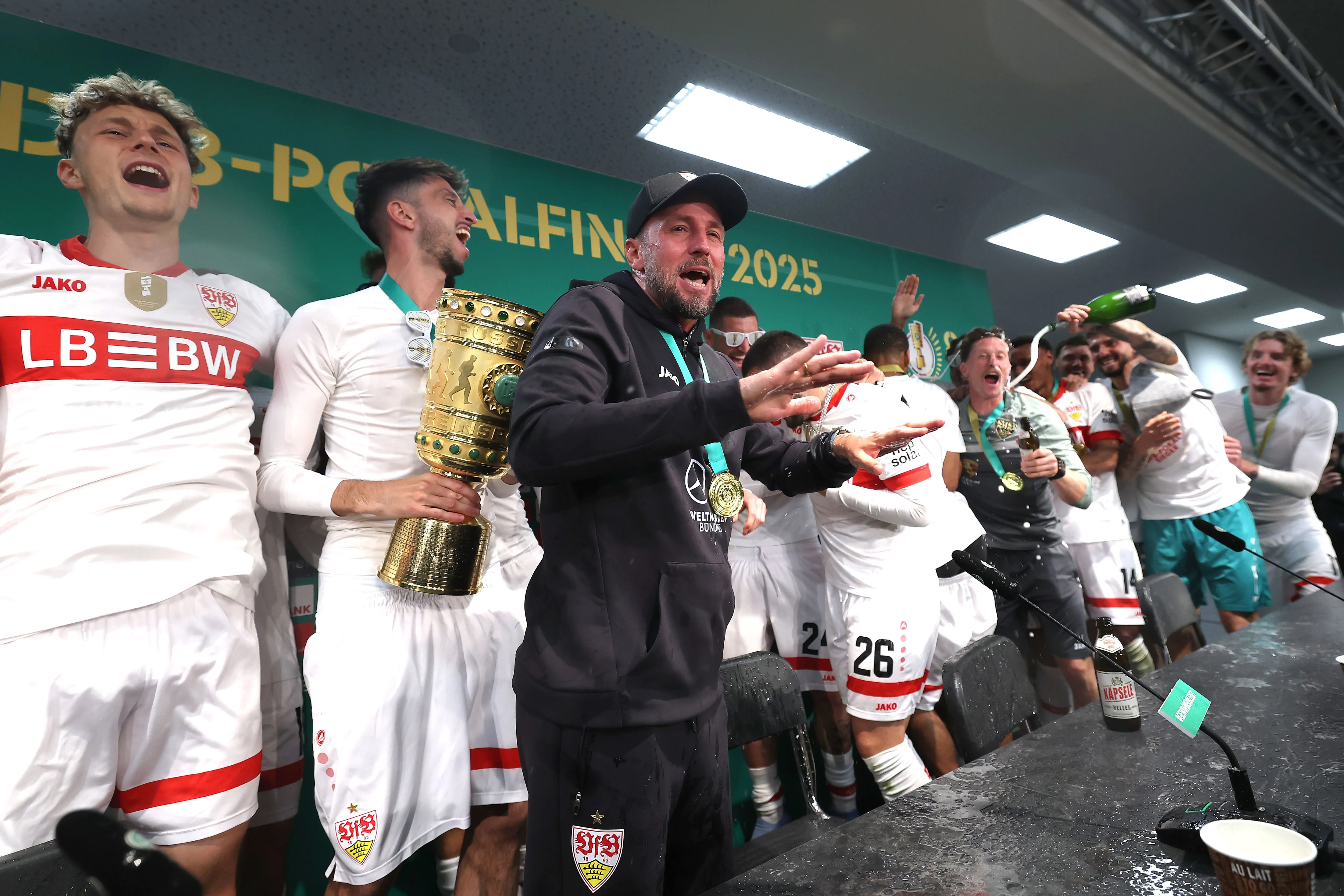 Freude beim VfB Stuttgart. Das Team von Trainer Sebastian Hoeneß hat das Finale des DFB-Pokals im Berliner Olympiastadion für sich entschieden. Gegen Drittliga-Meister Arminia Bielefeld stand am Ende ein 4:2-Erfolg auf der Anzeigetafel.