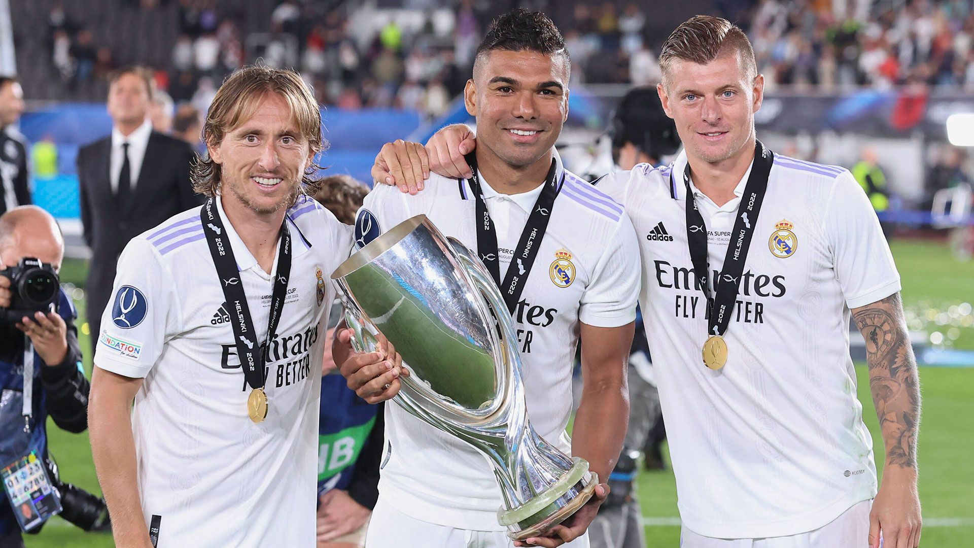 Gegen Eintracht Frankfurt feierte Toni Kroos im Jahr 2022 bereits zum fünften Mal einen Sieg im UEFA Supercup. Damit sammelte er ebenso viele Titel wie etwa Real Madrid. Vor der Saison 2013/14 gewann er den Titel mit dem FC Bayern. Nach seinem Wechsel auf die iberische Halbinsel holte er die Trophäe vier weitere Male - 2014, 2017, 2018 und 2022.Imago Images