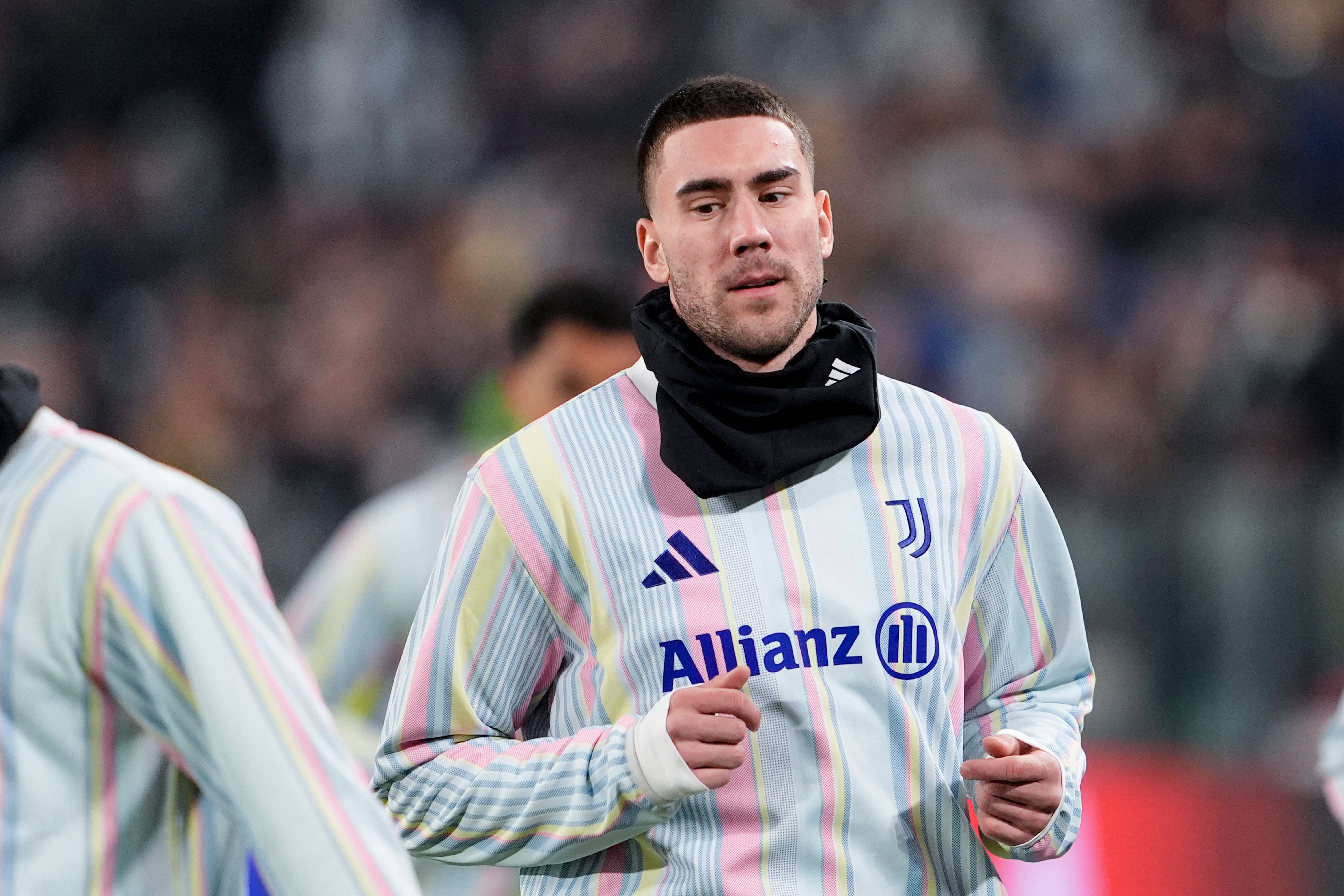 JuventusÕs Dusan Vlahovic before the Serie A soccer match between Juventus Fc and Cagliariat the Juventus Stadium in Turin, north west Italy - November 29, 2025. - Soccer PUBLICATIONxNOTxINxITAxFRA...